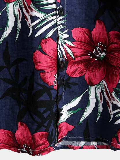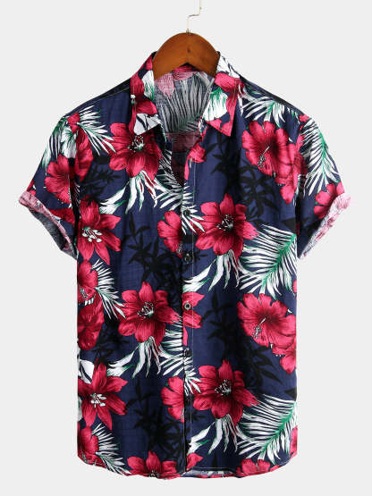 Men's Flower Tropical Hawaii Cotton Short Sleeve Shirt