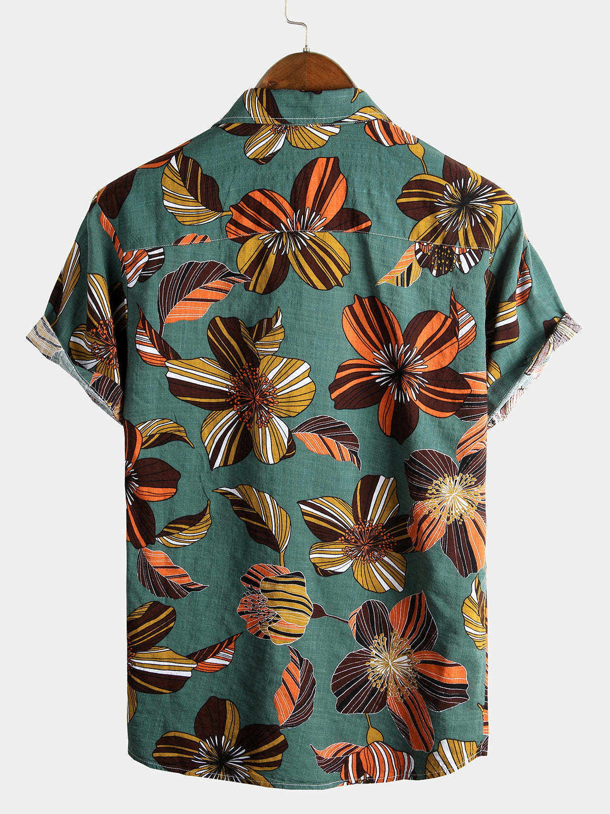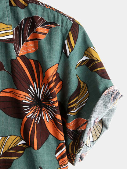 Men's Flower Tropical Hawaii Cotton Short Sleeve Shirt