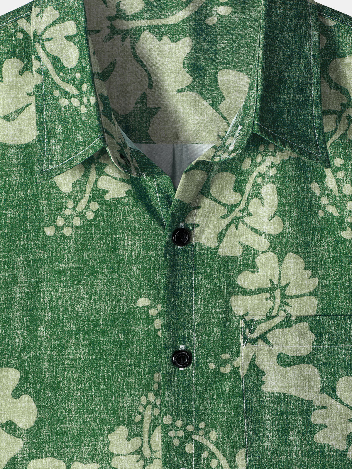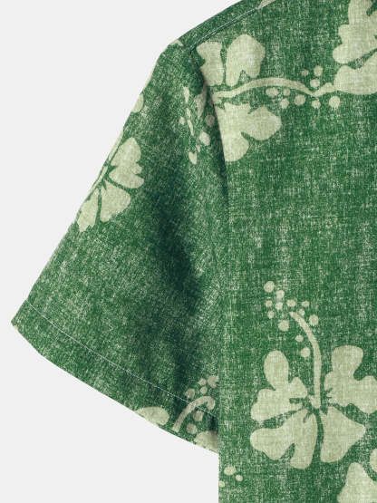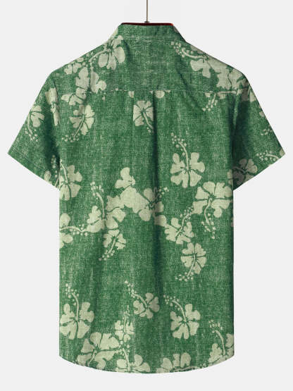 Men's Floral Hawaiian Pocket Green Button Up Short Sleeve Shirt