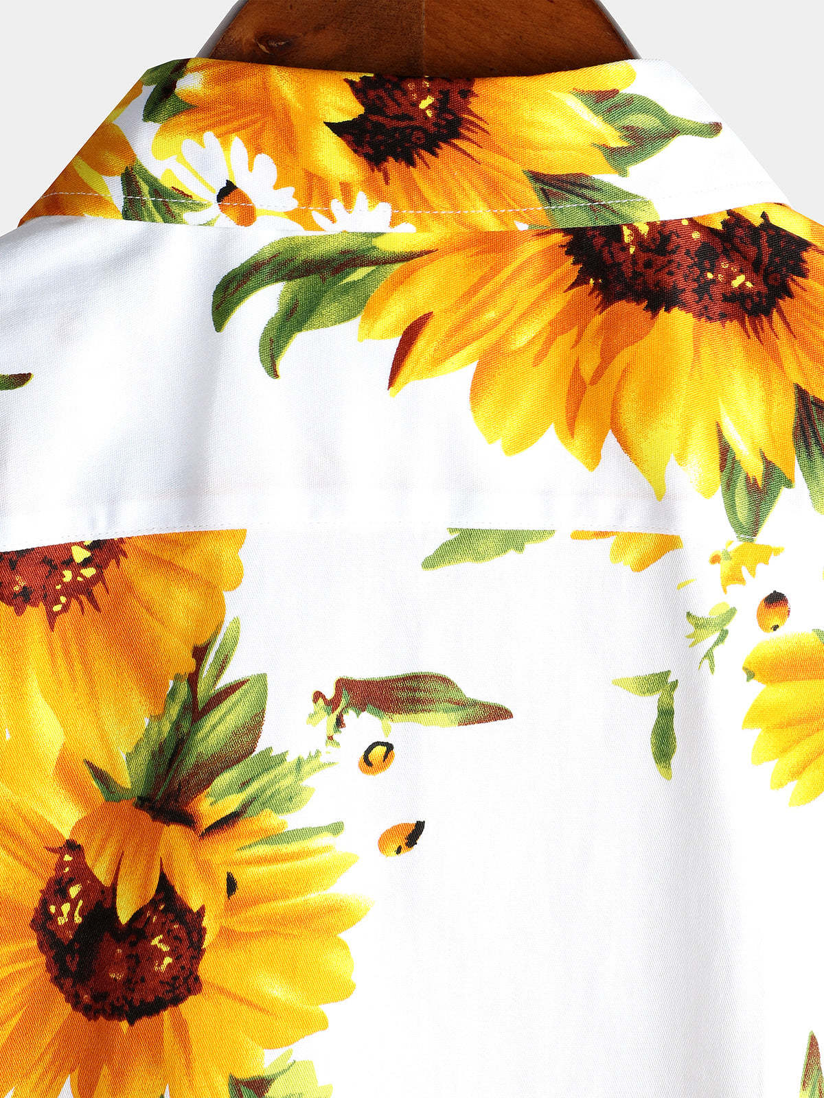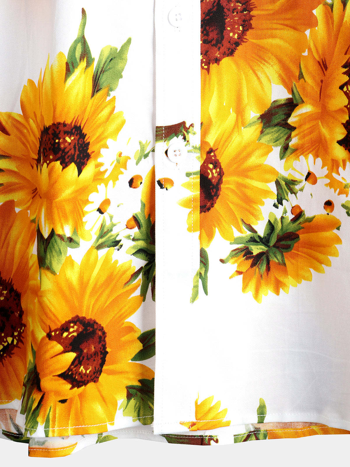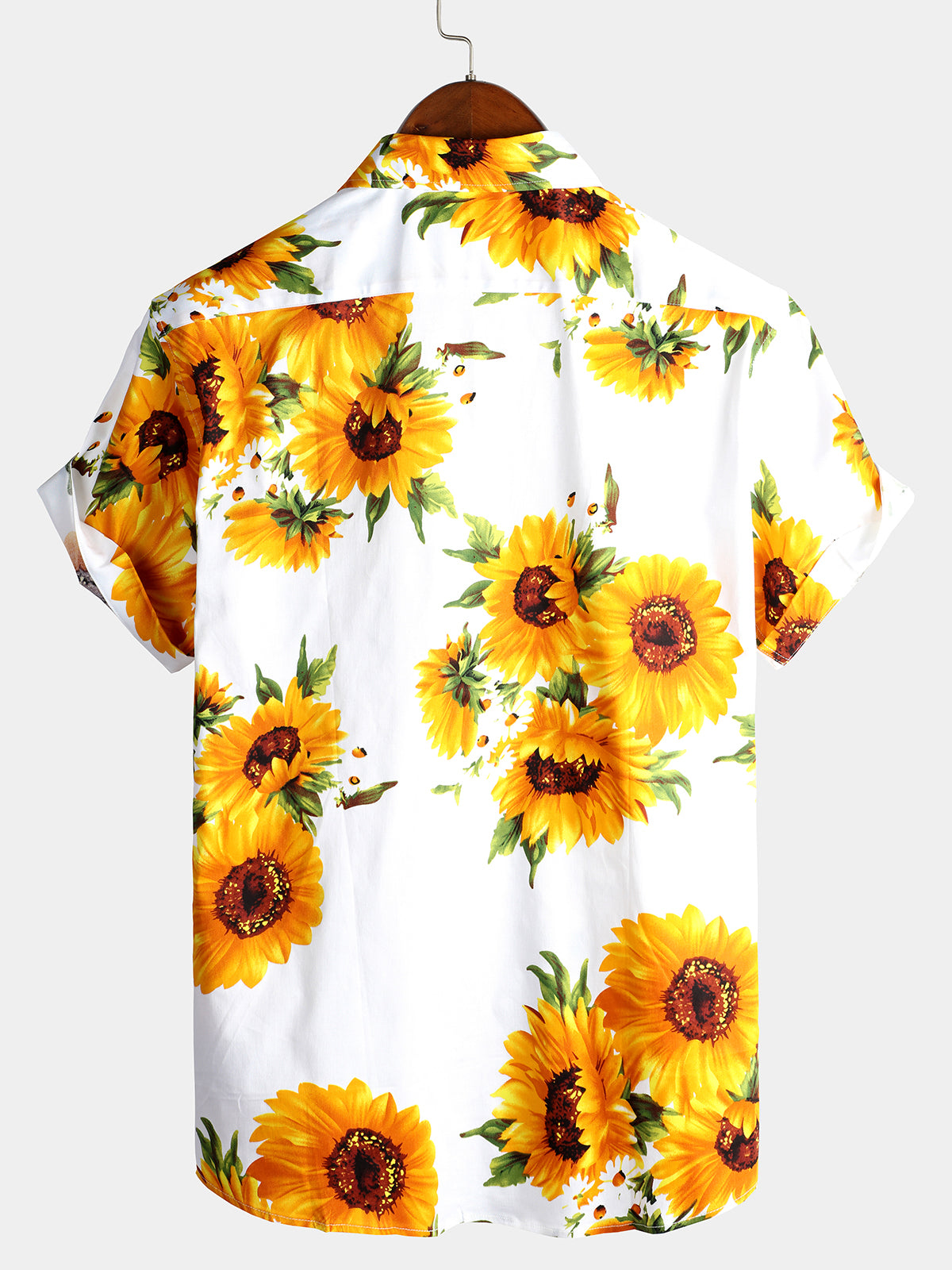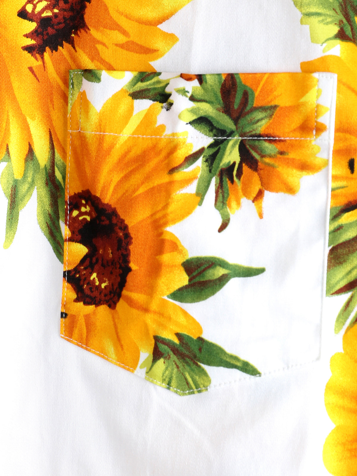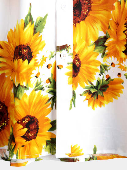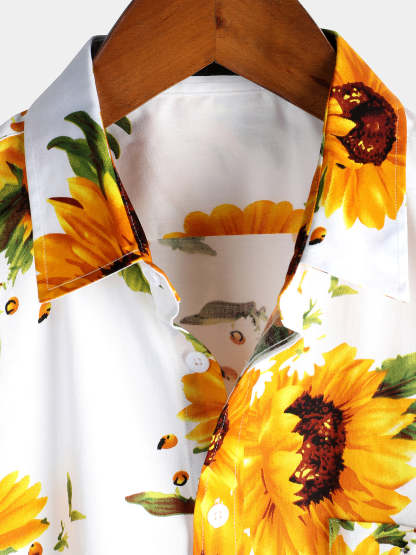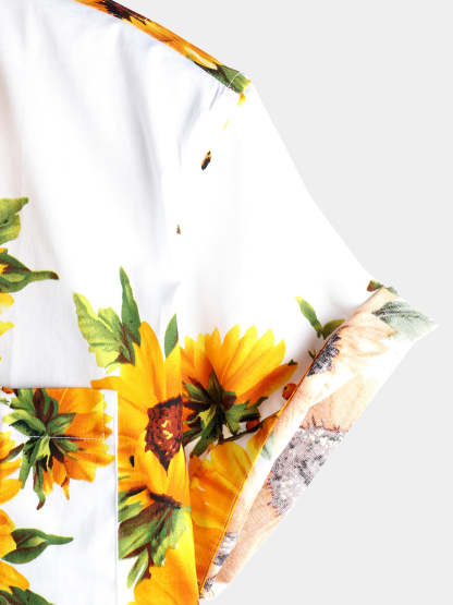 Men's Vintage Sunflower Cotton Floral Pocket Short Sleeve Button Up Shirt