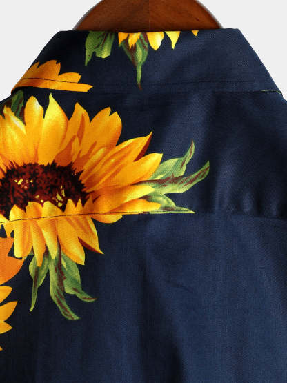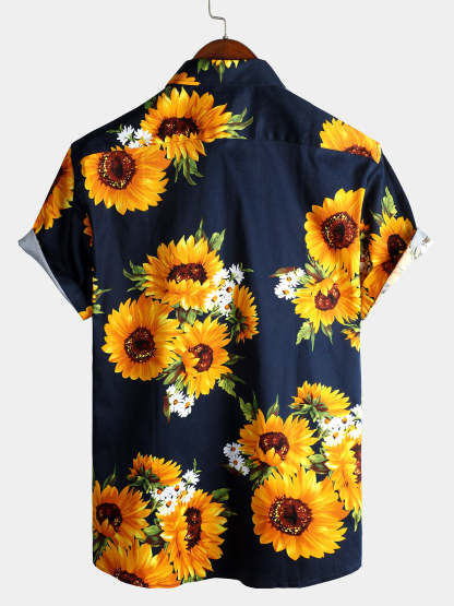 Men's Vintage Sunflower Pocket Short Sleeve Shirt
