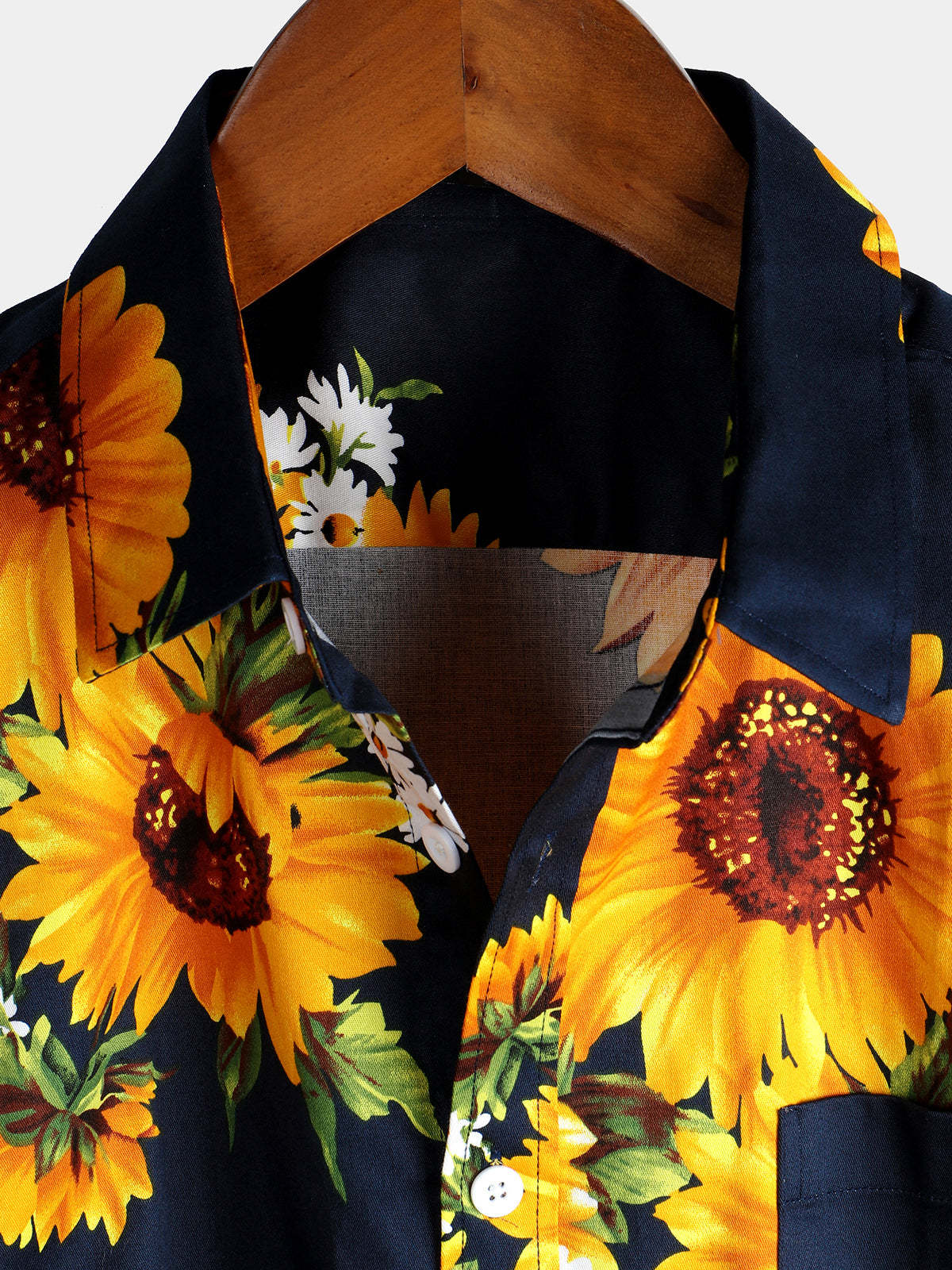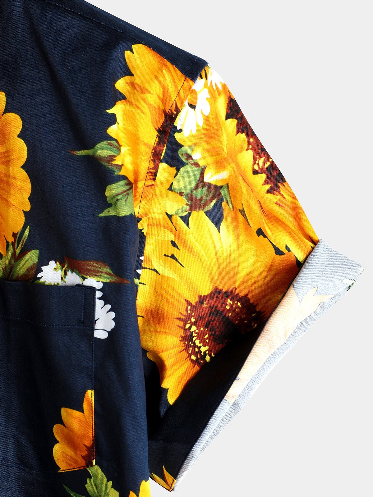 Men's Vintage Sunflower Pocket Short Sleeve Shirt – Mentalmens