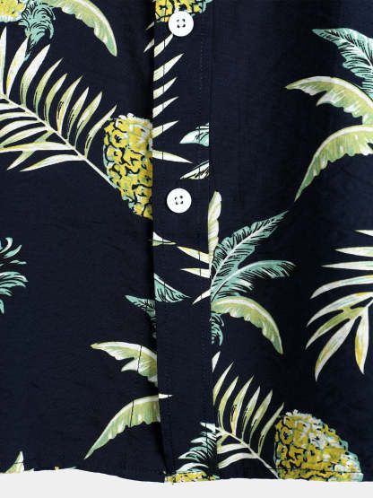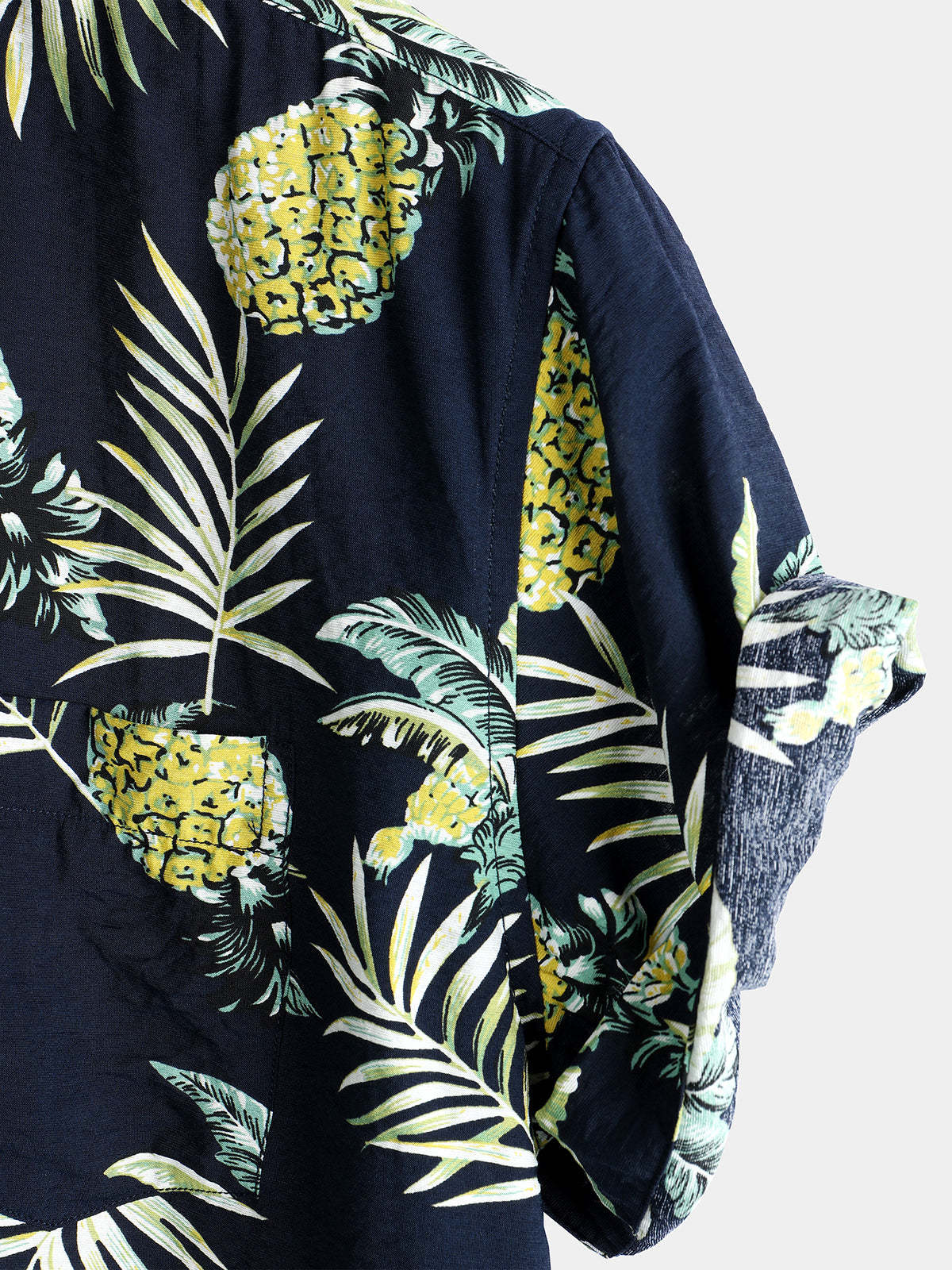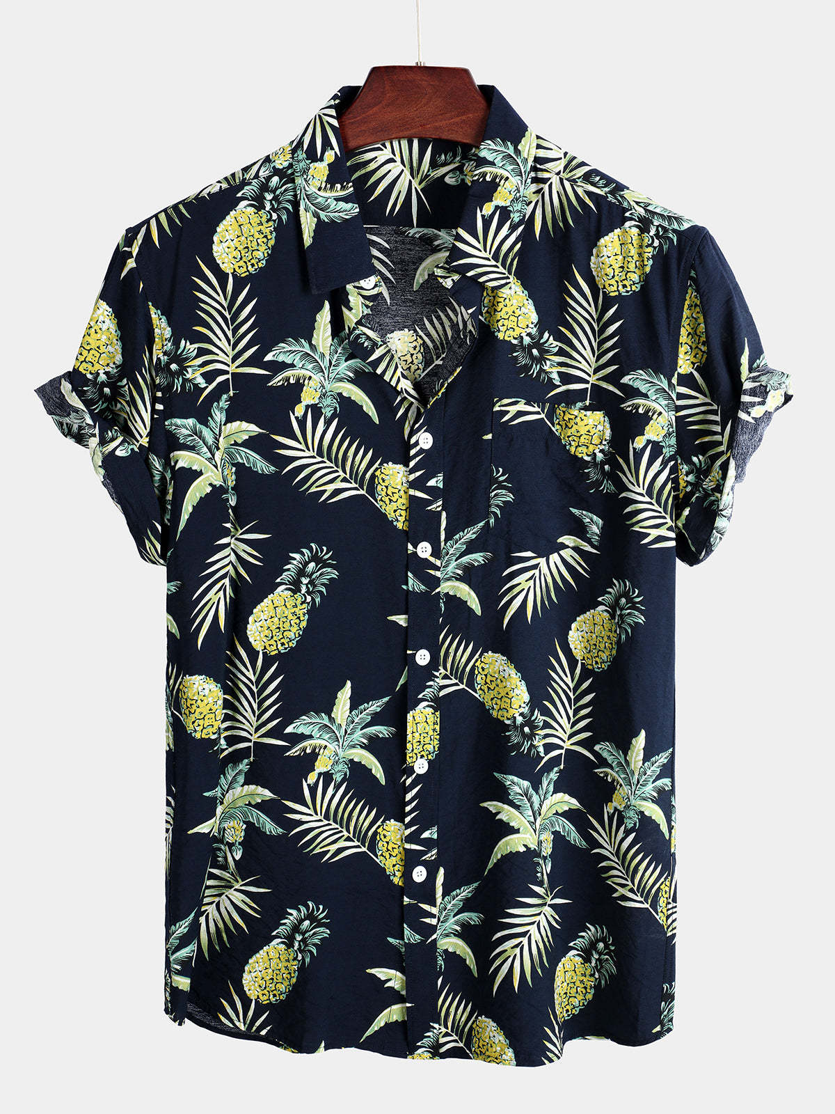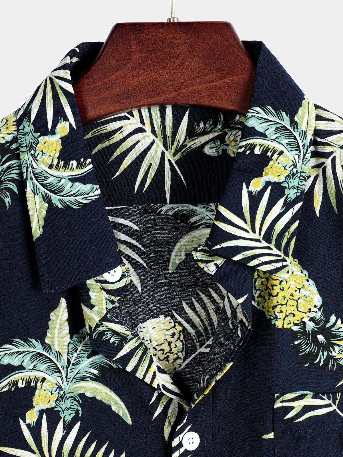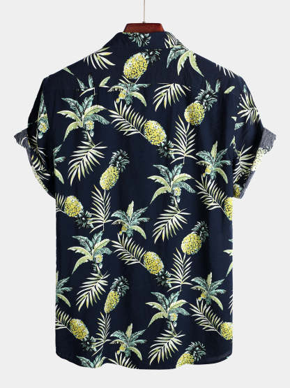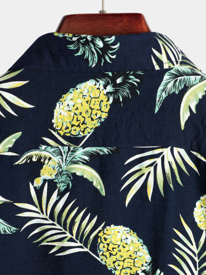 Men's Holiday Pineapple Short Sleeve Pocket Shirt