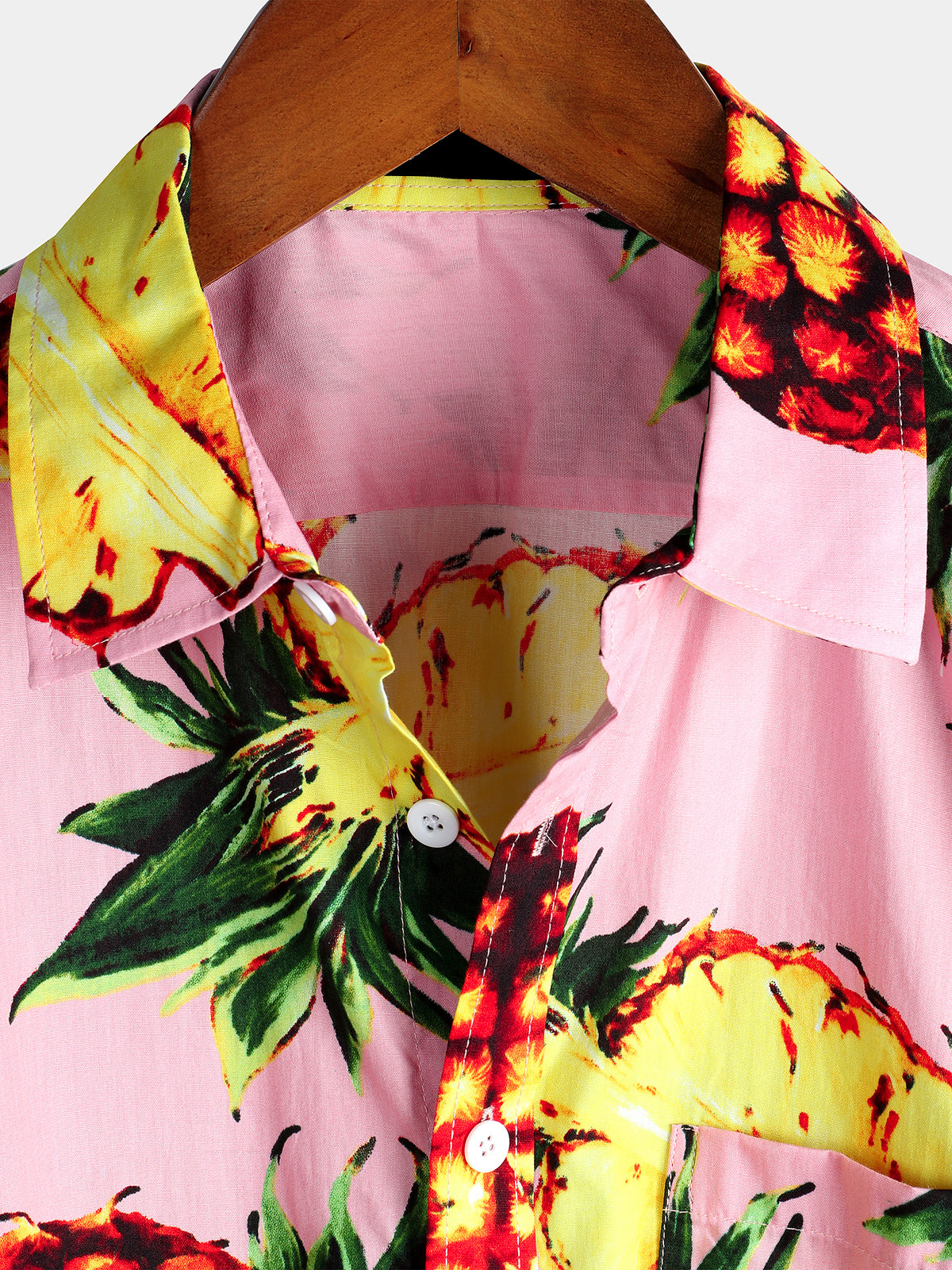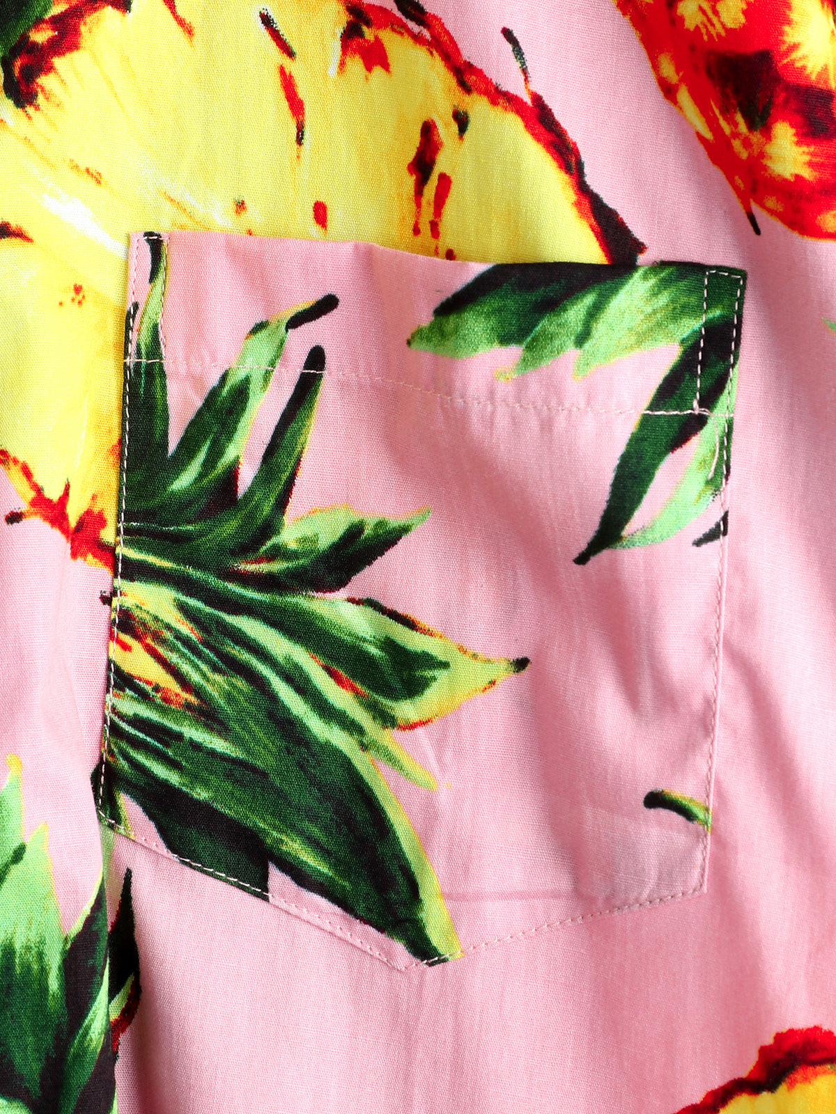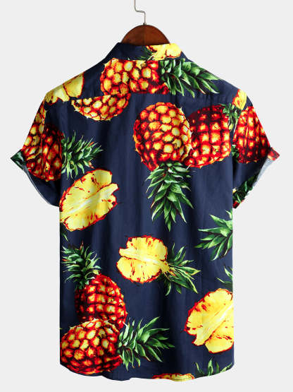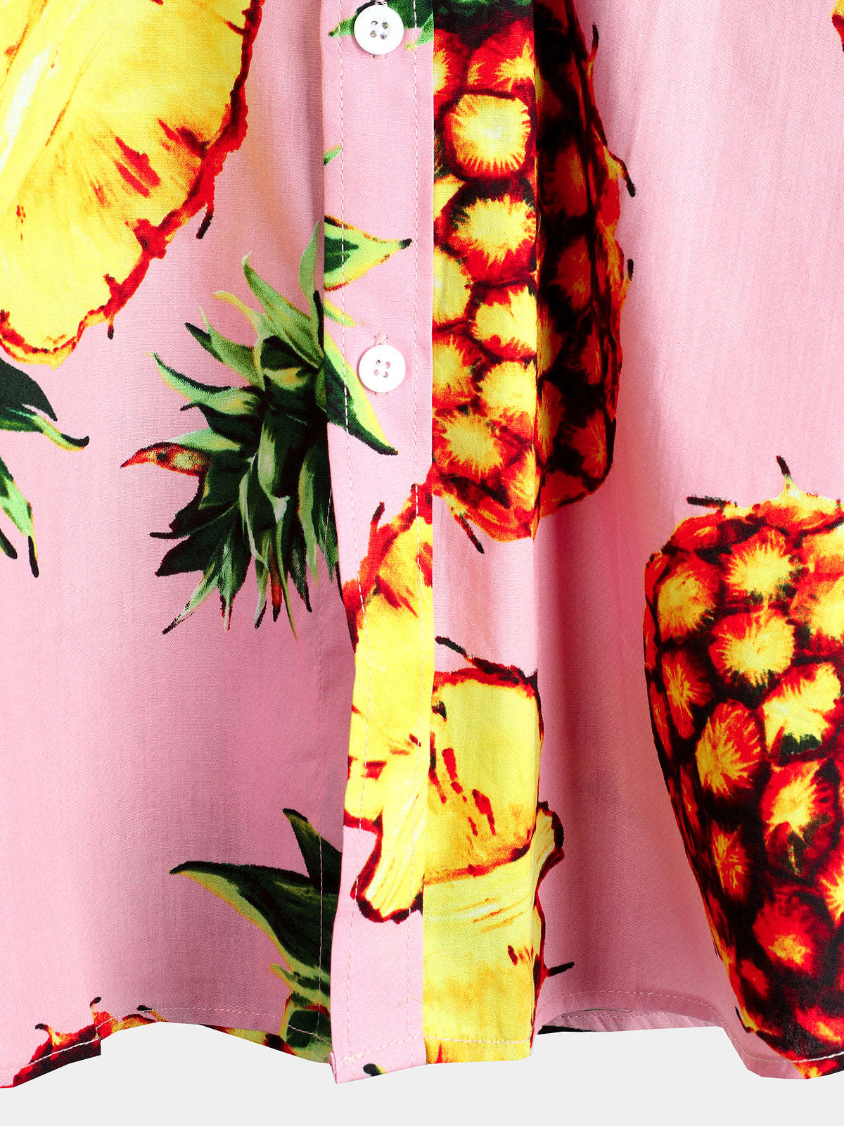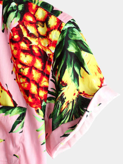 Men's Pink Pineapple Print Holiday Pocket Cotton Shirt