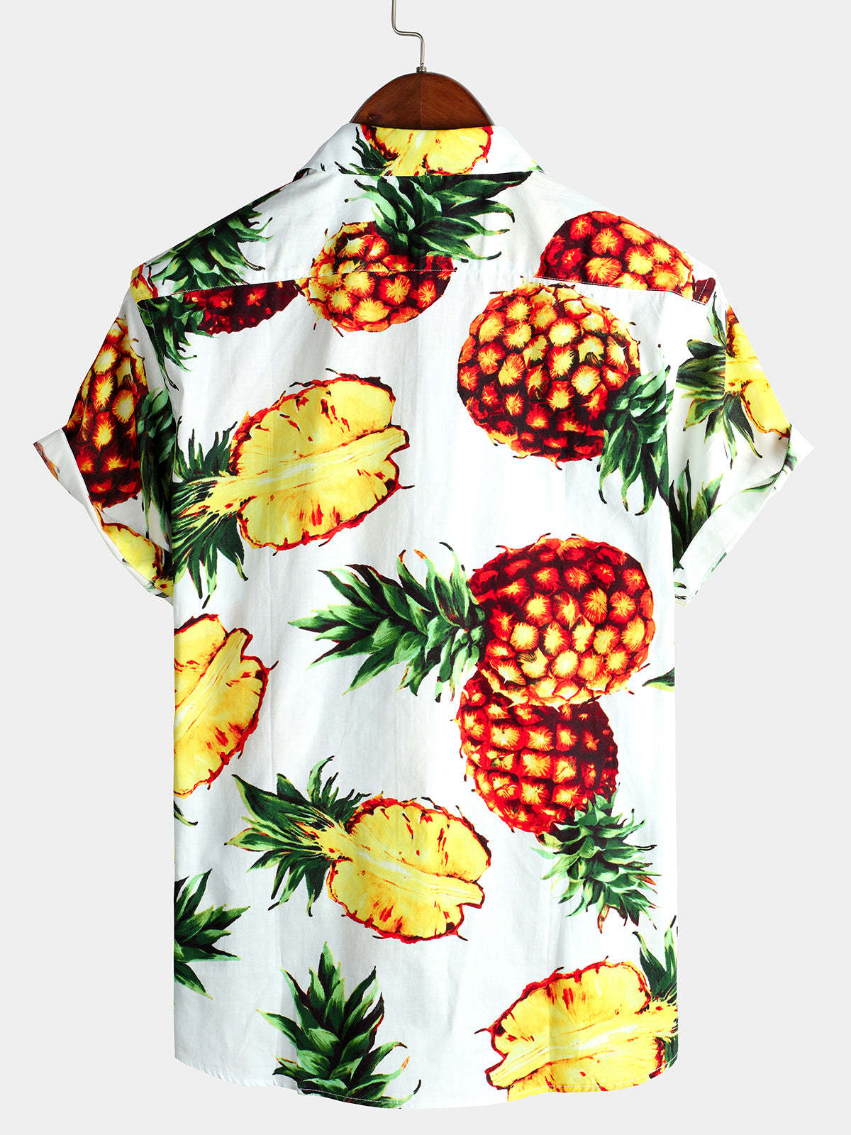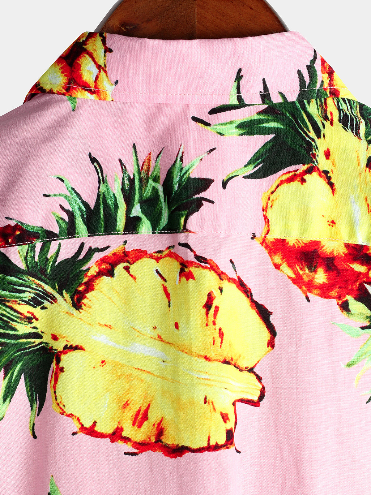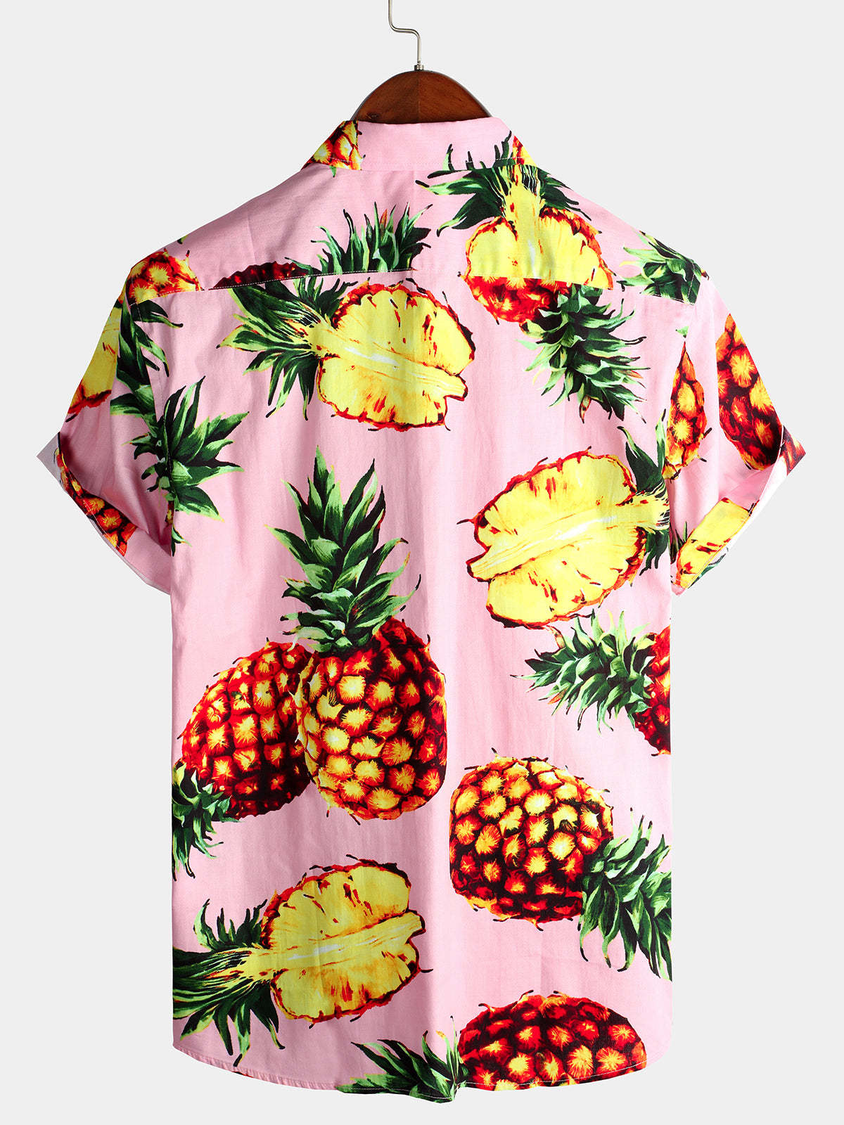 Men's Pink Pineapple Print Holiday Pocket Cotton Shirt