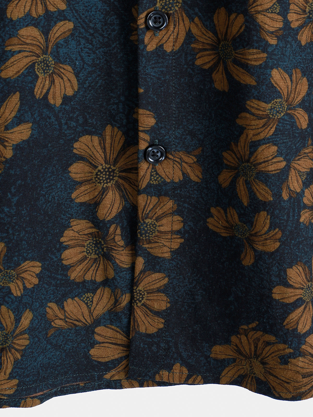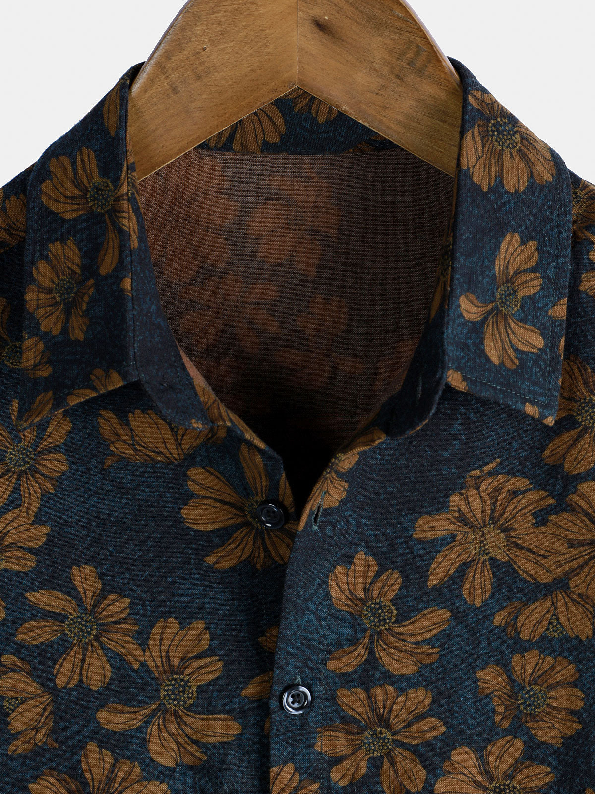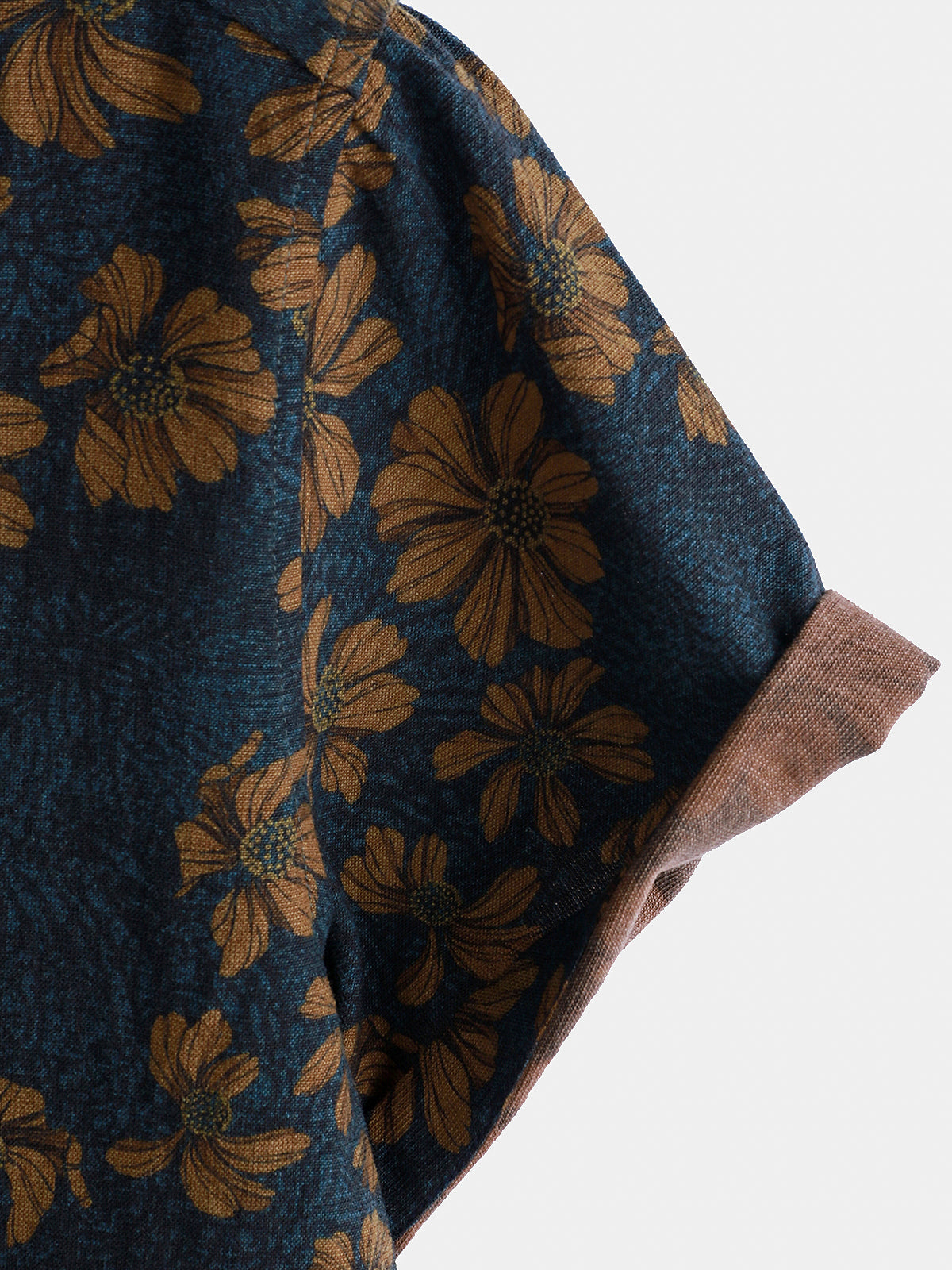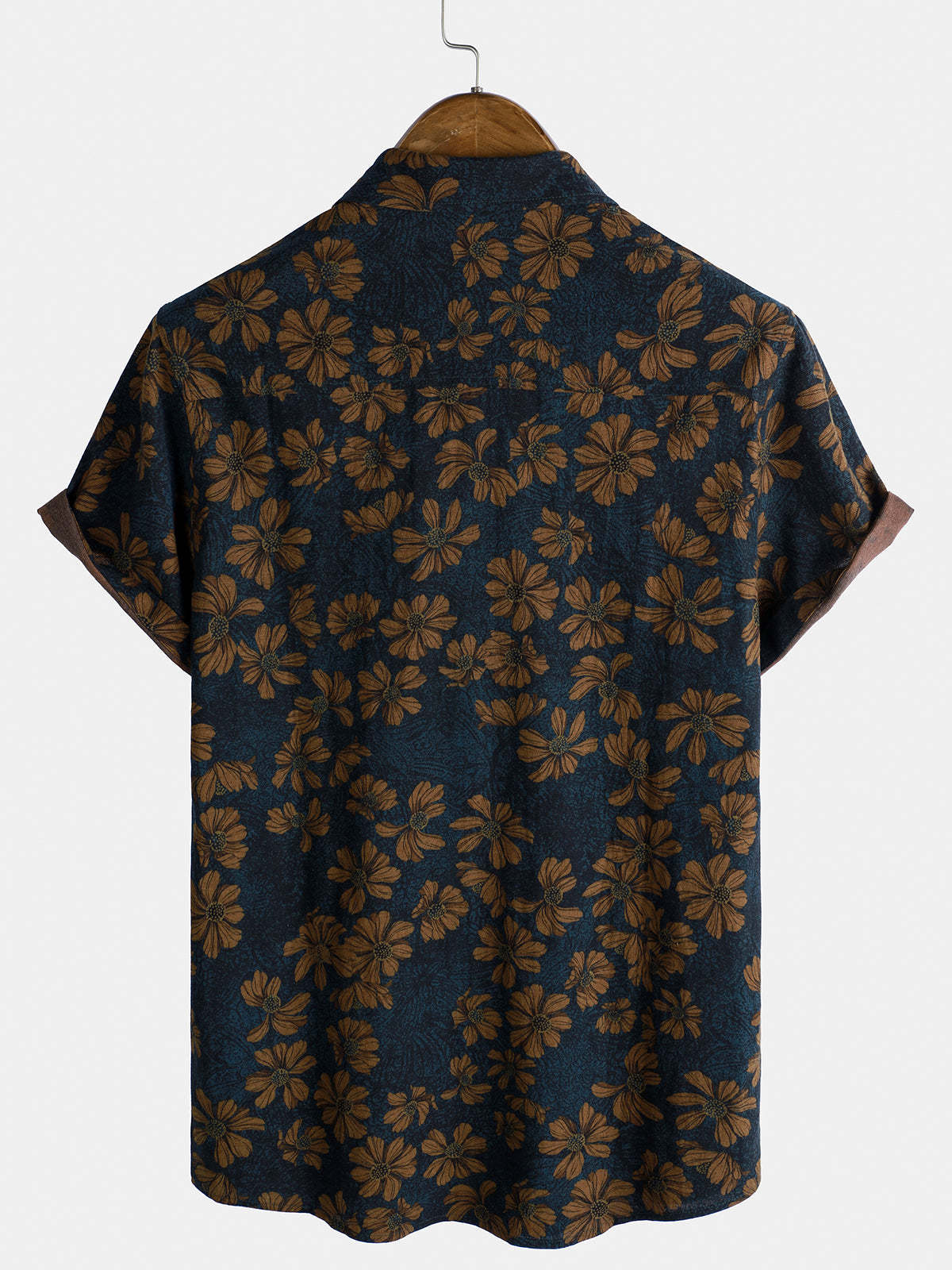 Men's Floral Print Vintage Flower Breathable Holiday Short Sleeve Shirt