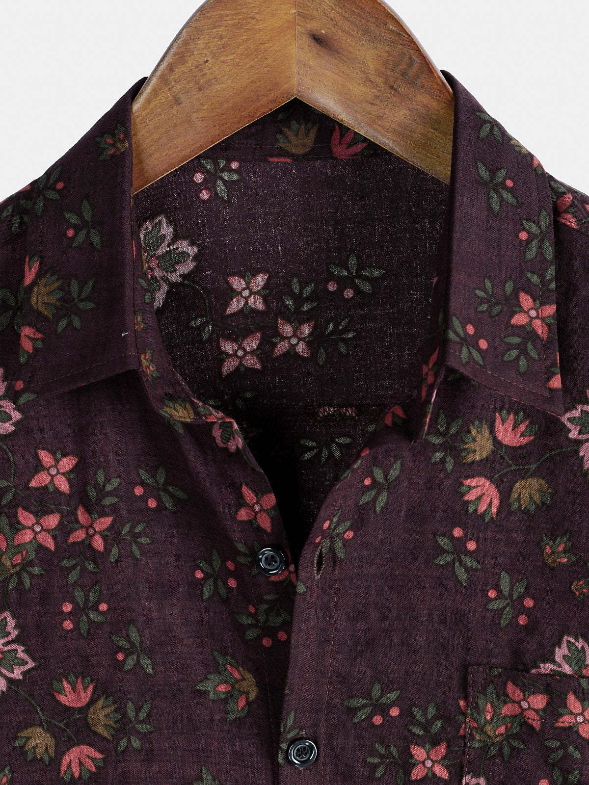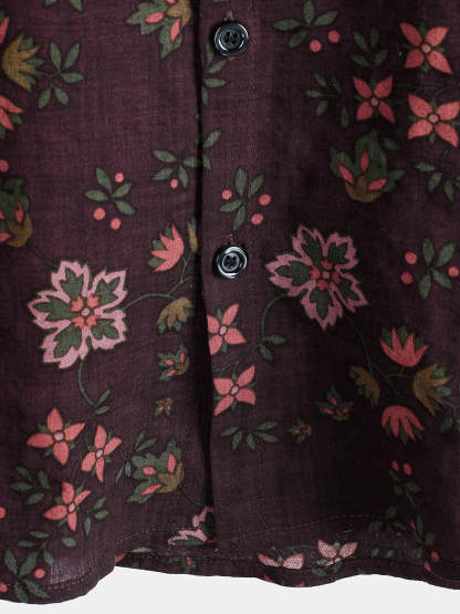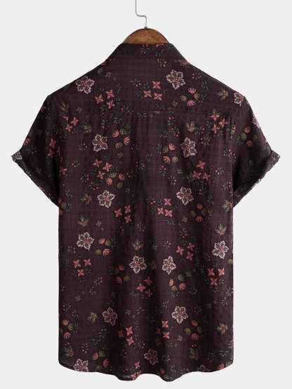Men's Floral Print Vintage Holiday Brown Hawaiian Short Sleeve Shirt