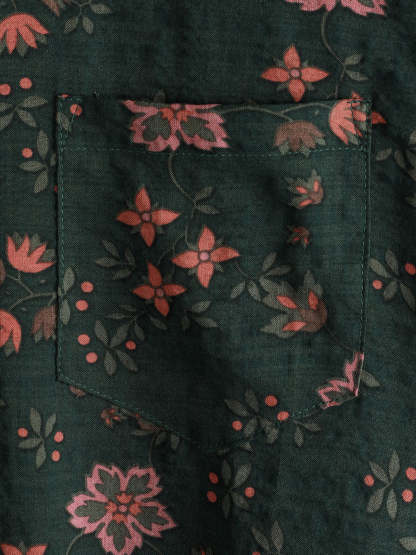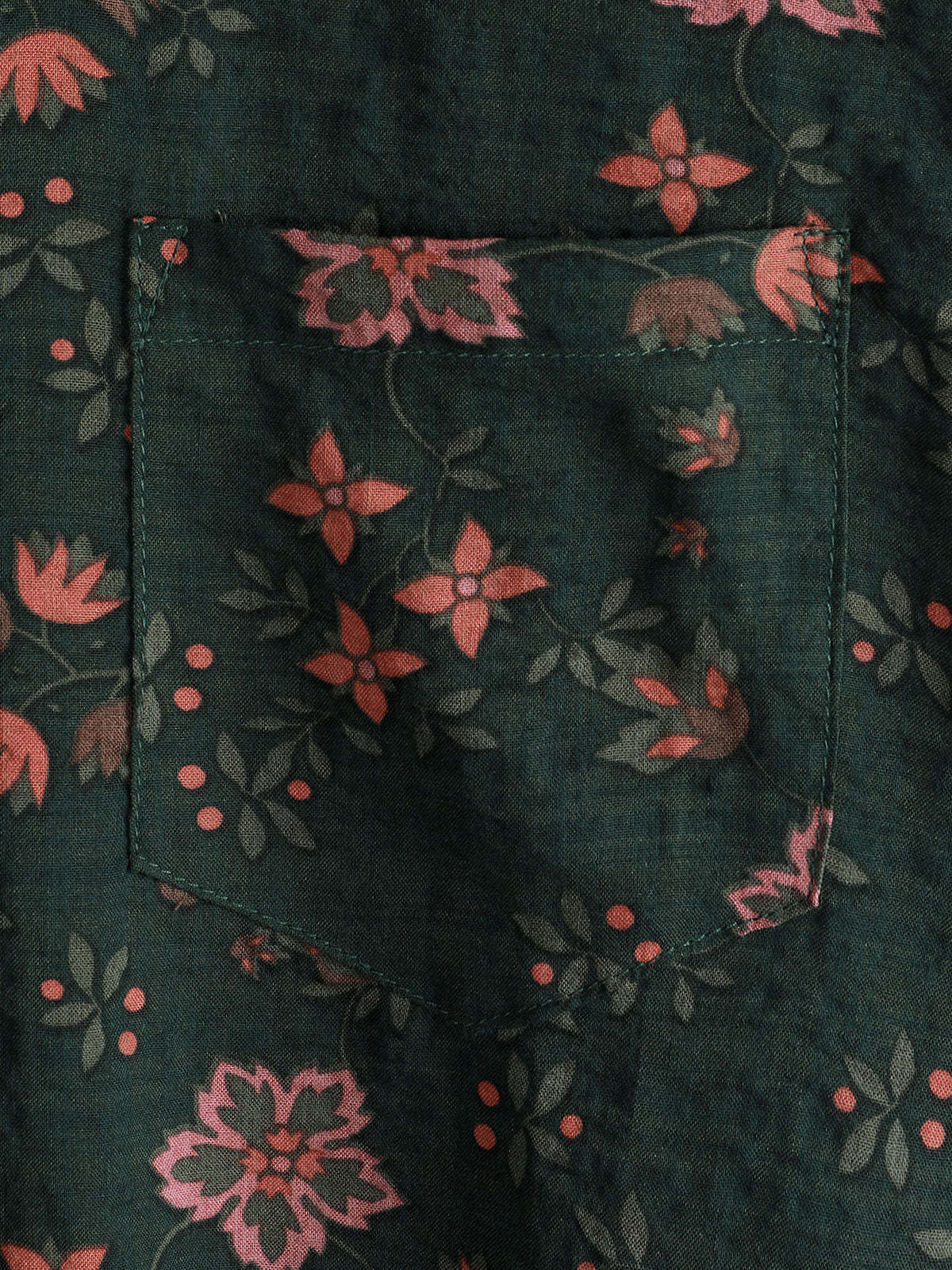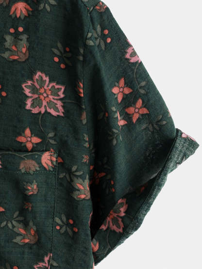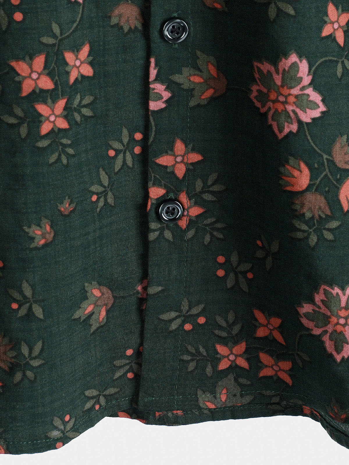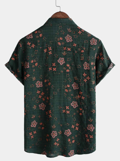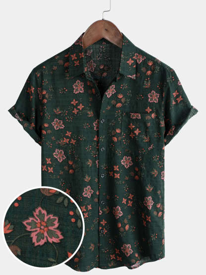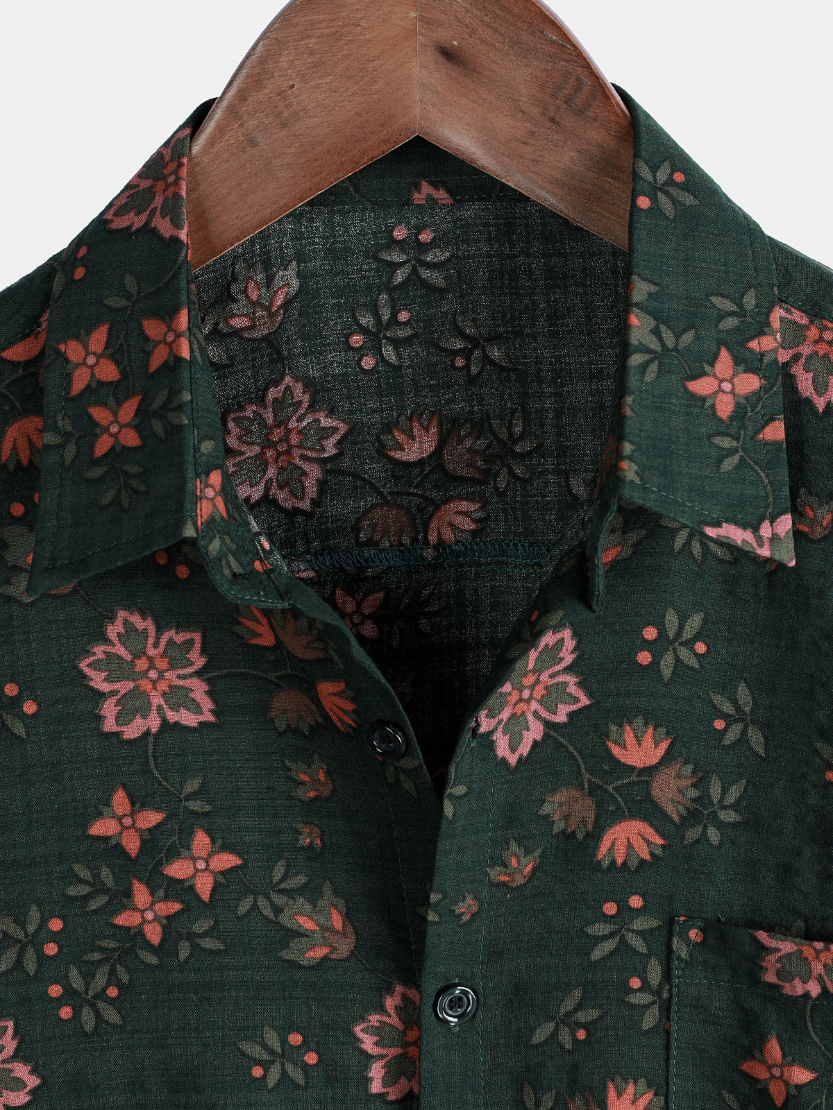 Men's Floral Print Vintage Holiday Green Hawaiian Short Sleeve Shirt