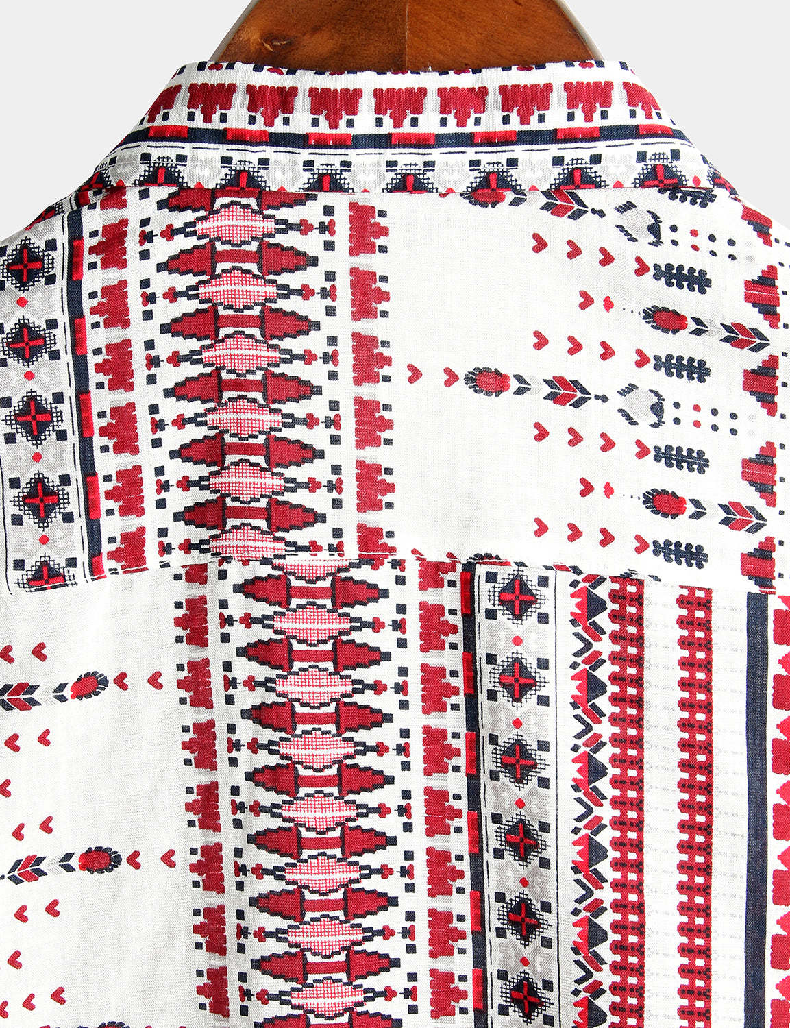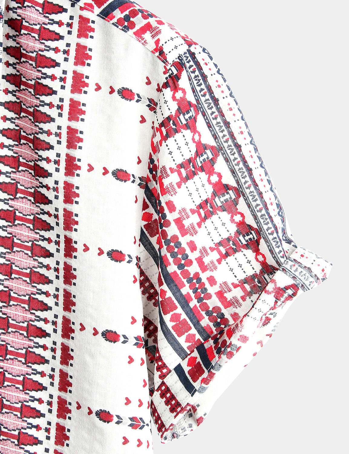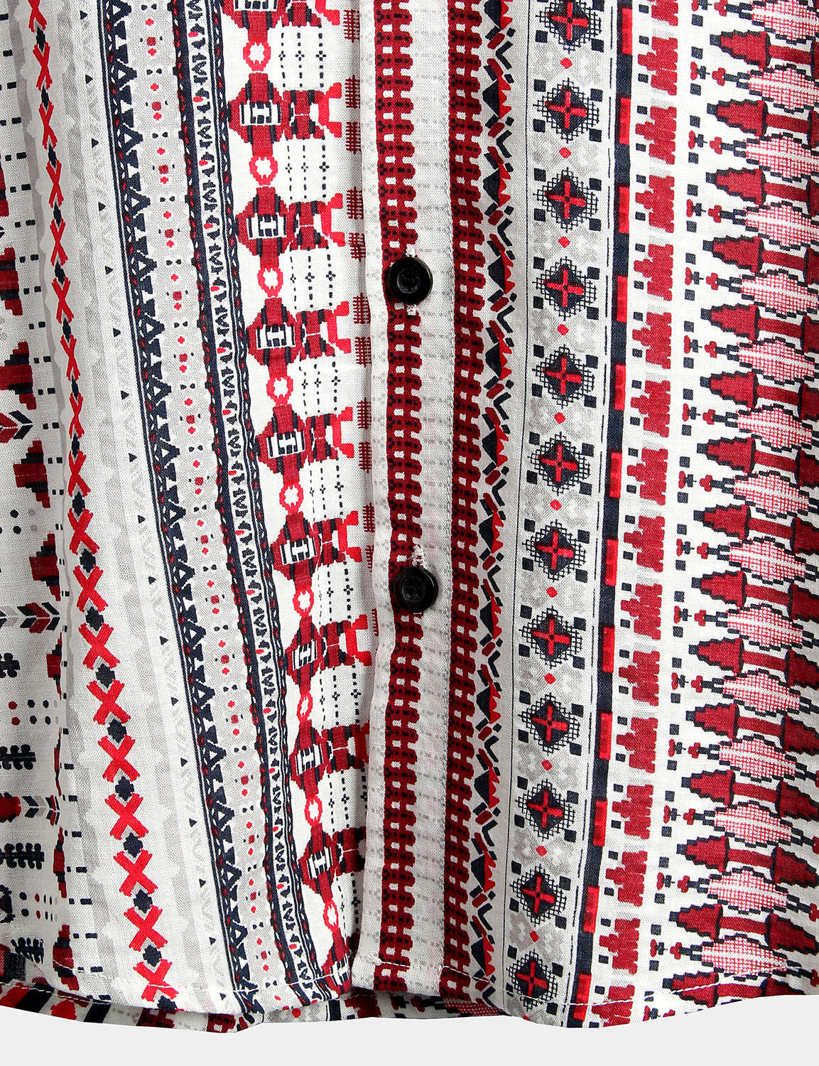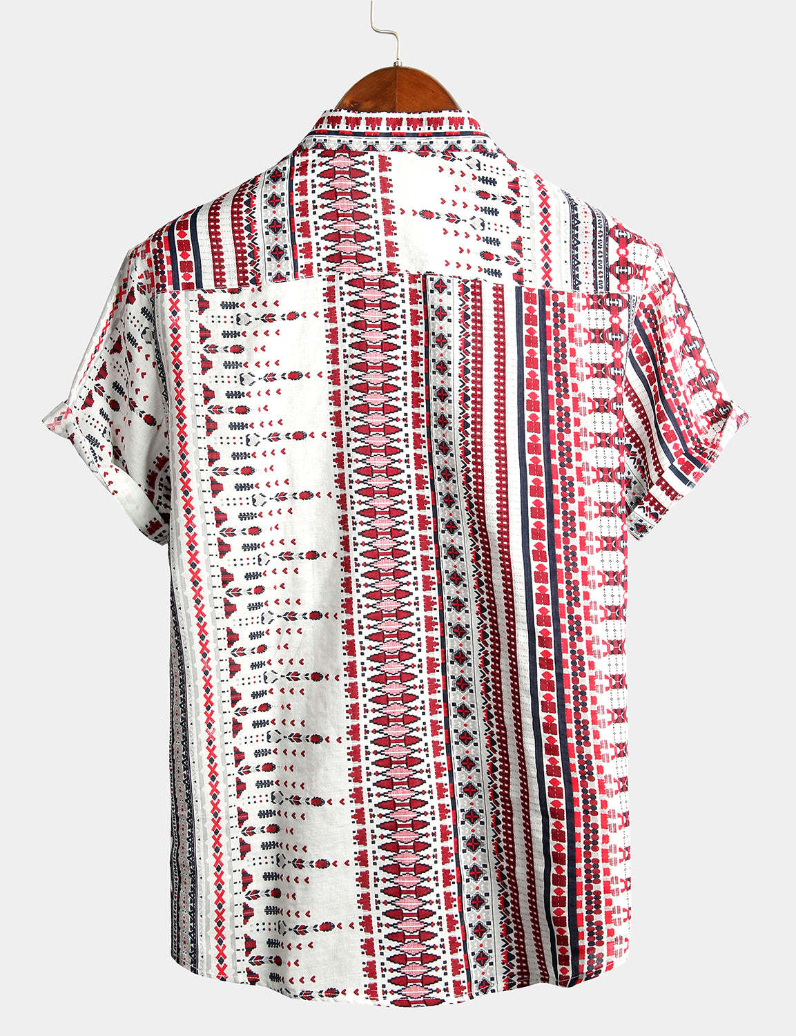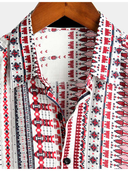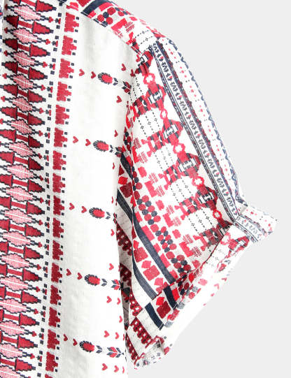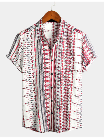 Men's Vintage Cotton Hawaiian White and Red Striped Beach Short Sleeve Shirt