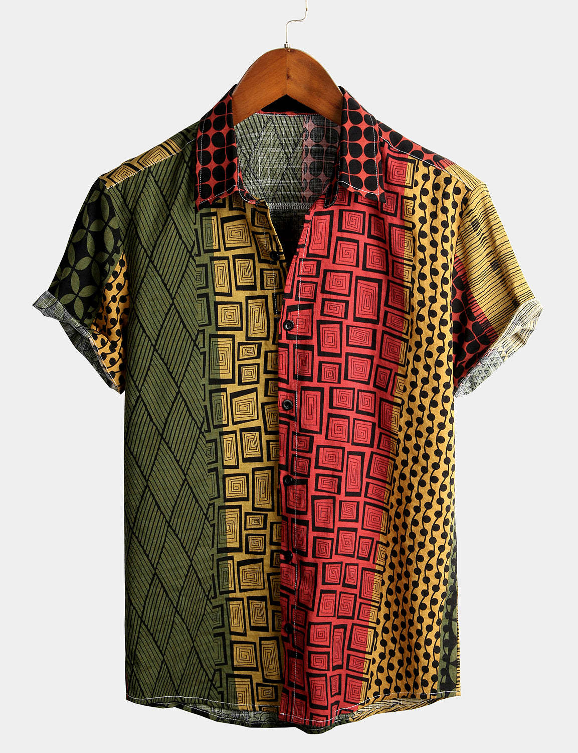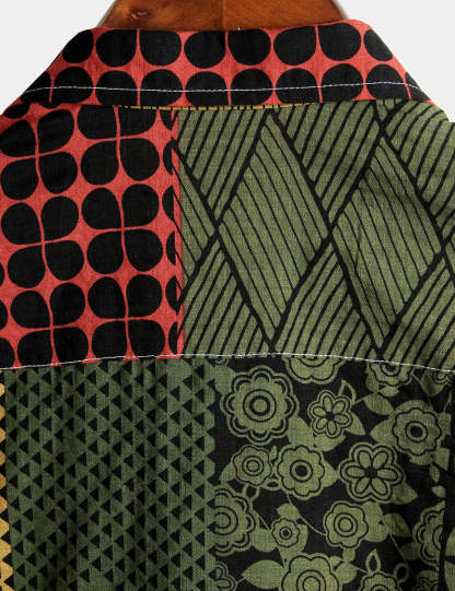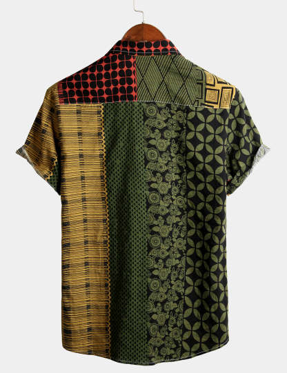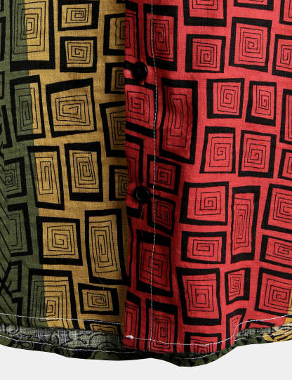 Men's Geometric Print Beach Short Sleeve Shirt