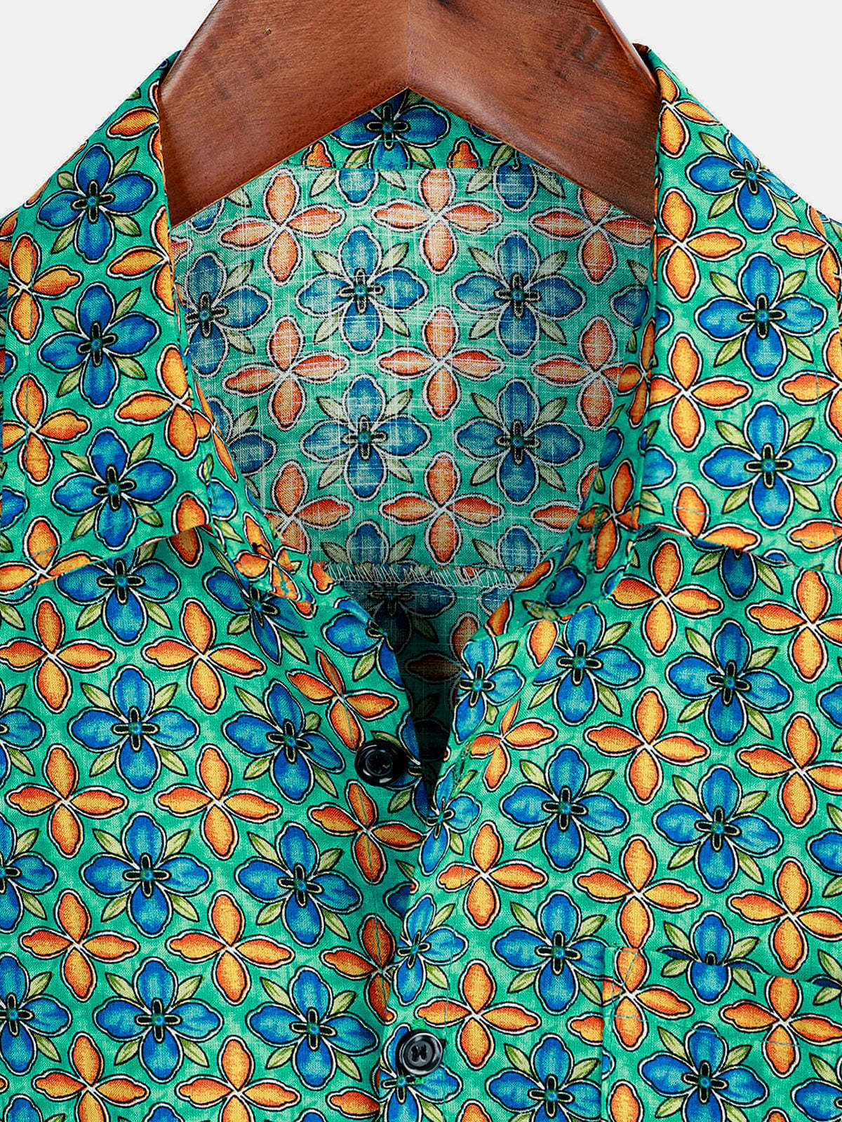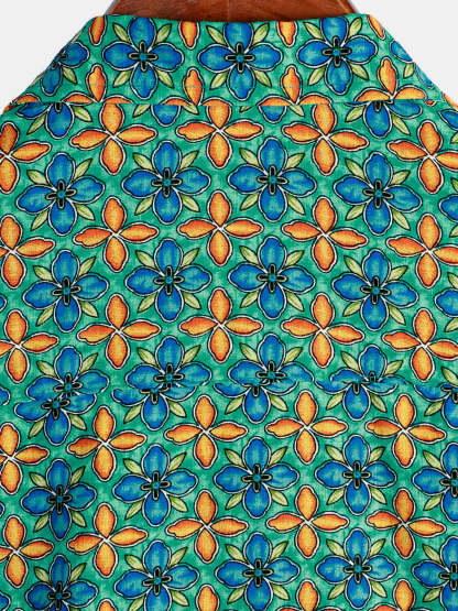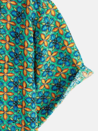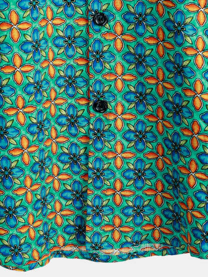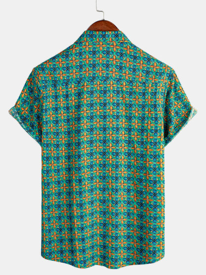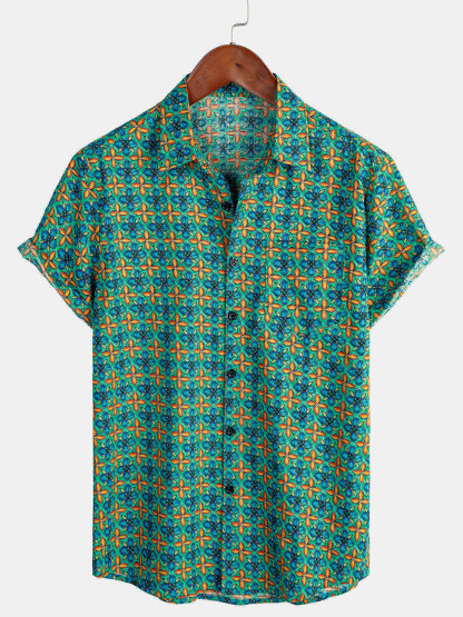 Men's Floral Vintage Short Sleeve Leisure Cotton Button Up Shirt