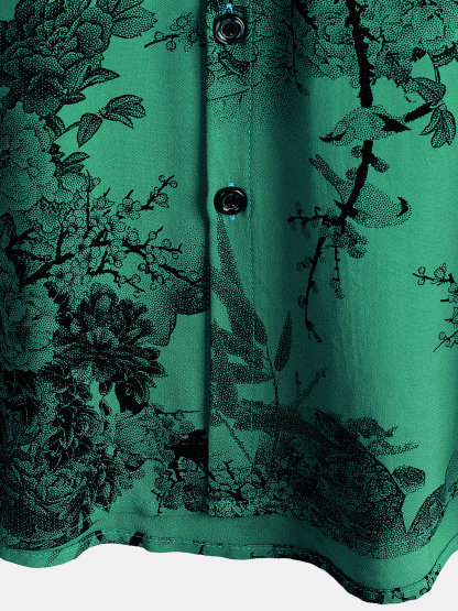 Men's Floral Vintage Summer Hawaiian Rayon Holiday Button Up Short Sleeve Shirt