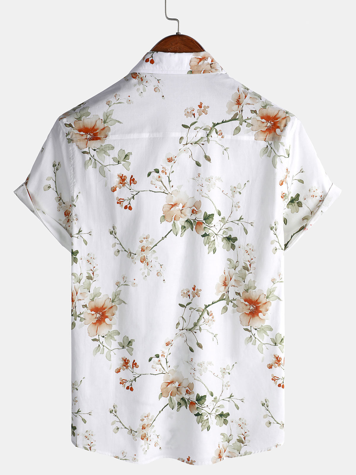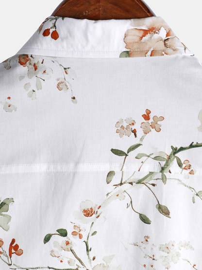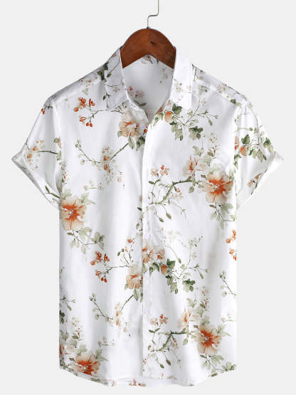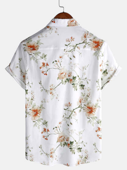 Men's Flower Print Cotton Hawaiian Floral Short Sleeve Shirt