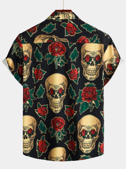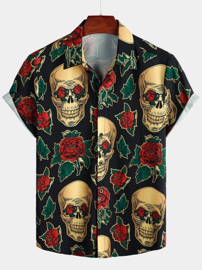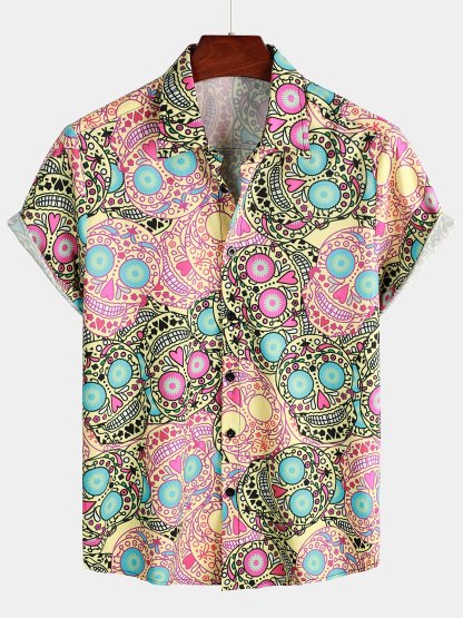 Men's Pink Funny Skull Print Short Sleeve Shirt – Mentalmens