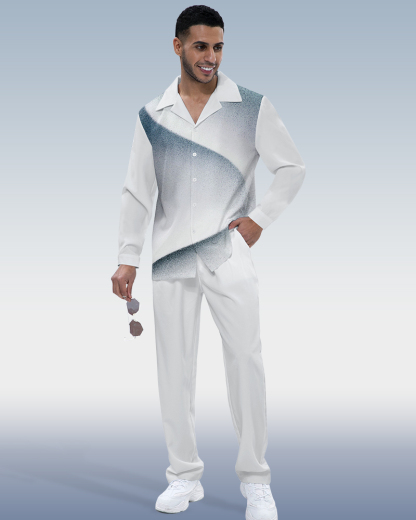 Men's Gradient Print Long Sleeve Shirt Walking Suit