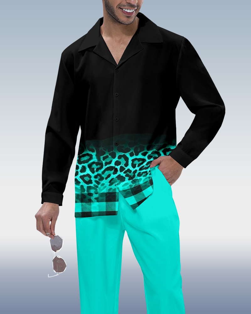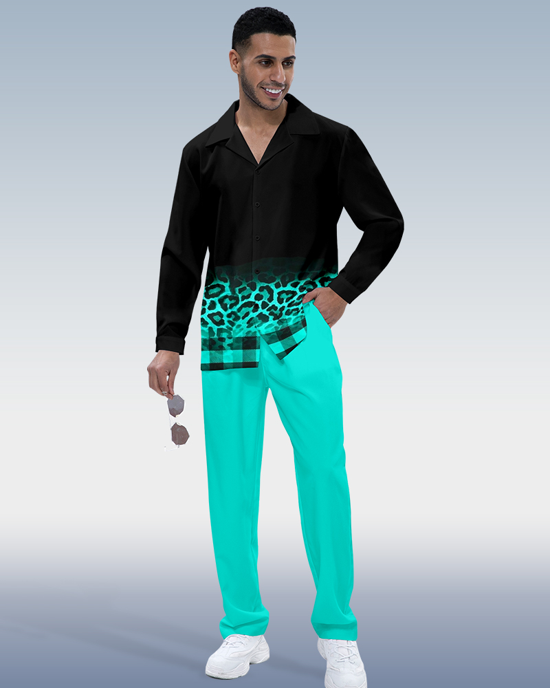 Men's Gradient Print Long Sleeve Shirt Walking Suit 72
