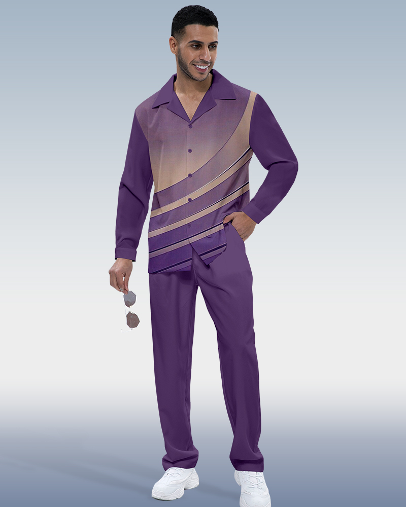 Men's Gradient Print Long Sleeve Shirt Walking Suit 9