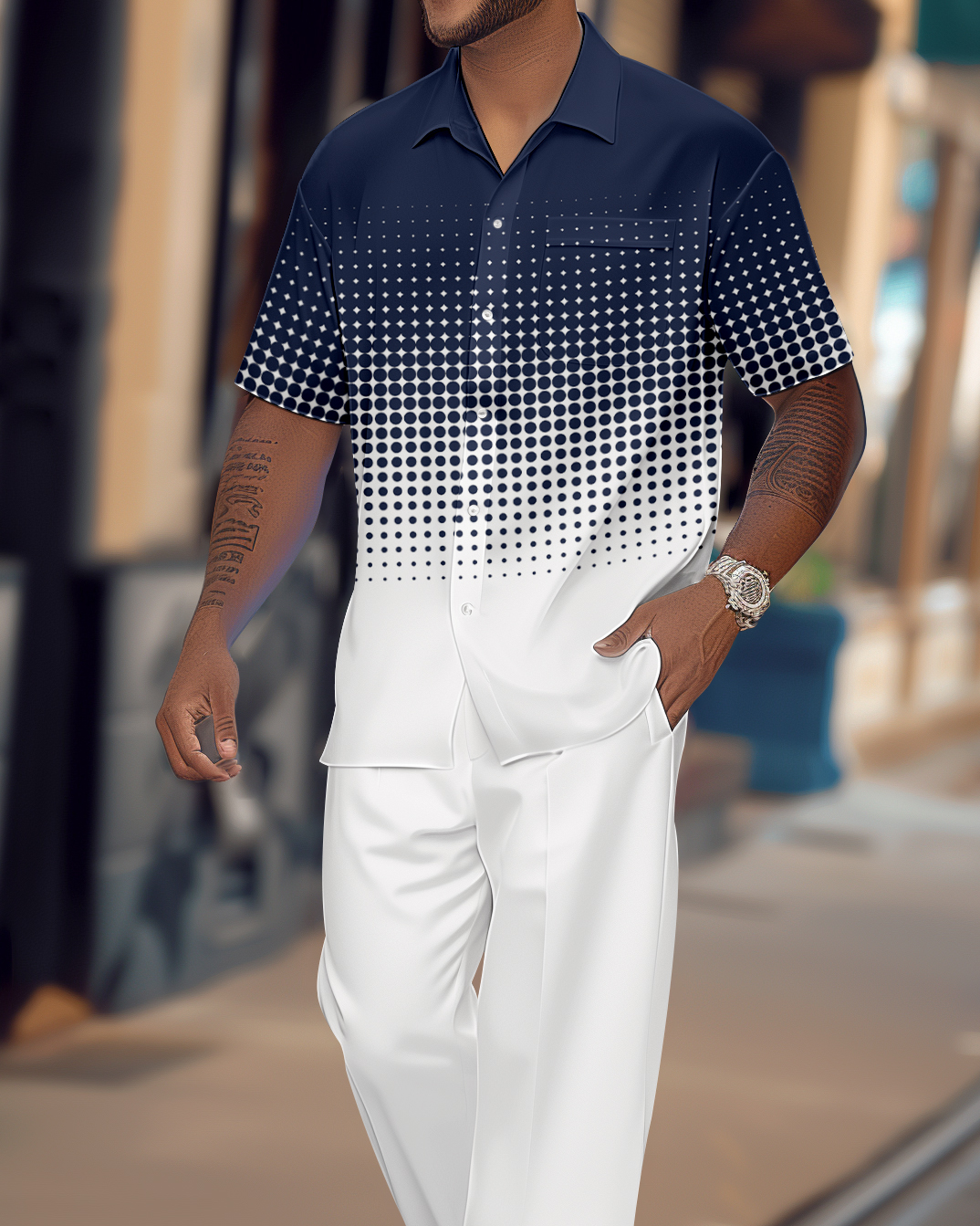 Men's Gradient Print Short Sleeve Shirt Walking Suit 1079