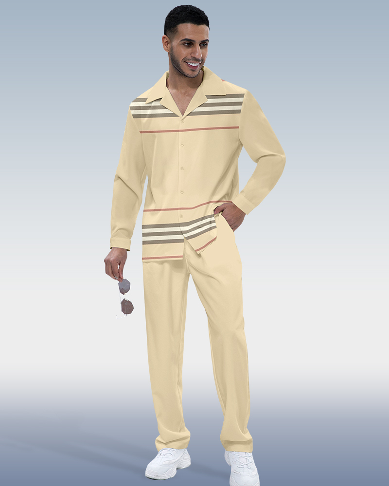 Men's Gradient Stripe Long Sleeve Shirt Walking Suit 62