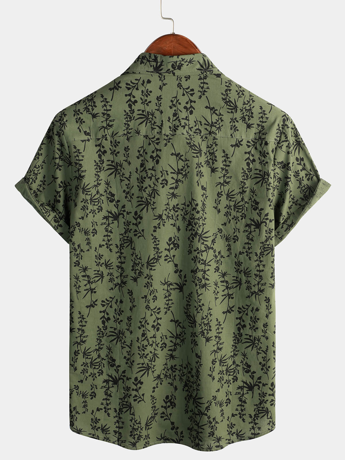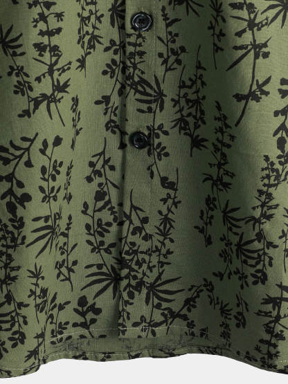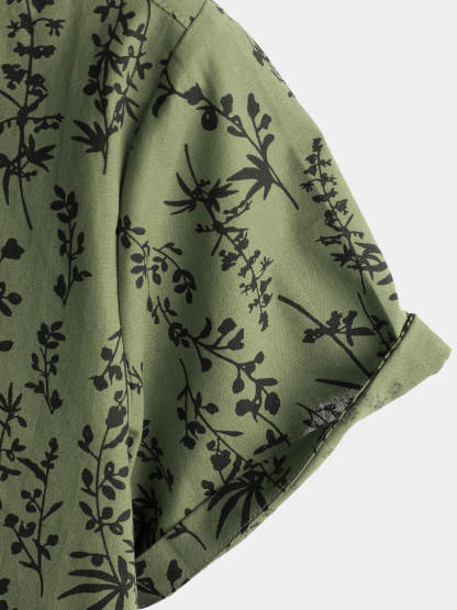 Men's Green Cotton Hawaiian Summer Vintage Floral Holiday Cruise Short Sleeve Button Up Shirt