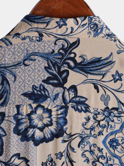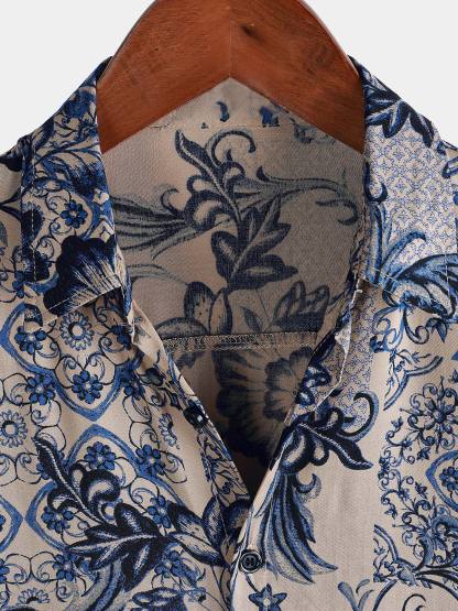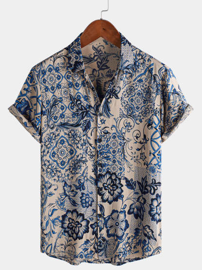 Men's Hawaiian Floral Summer Beach Short Sleeve Shirt