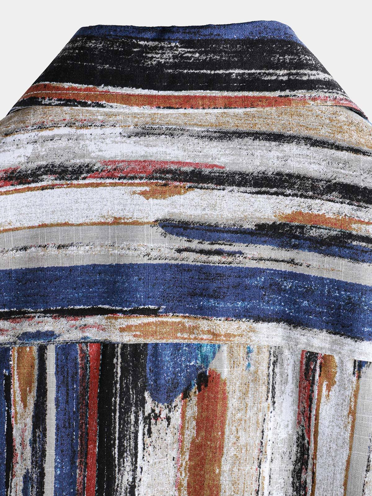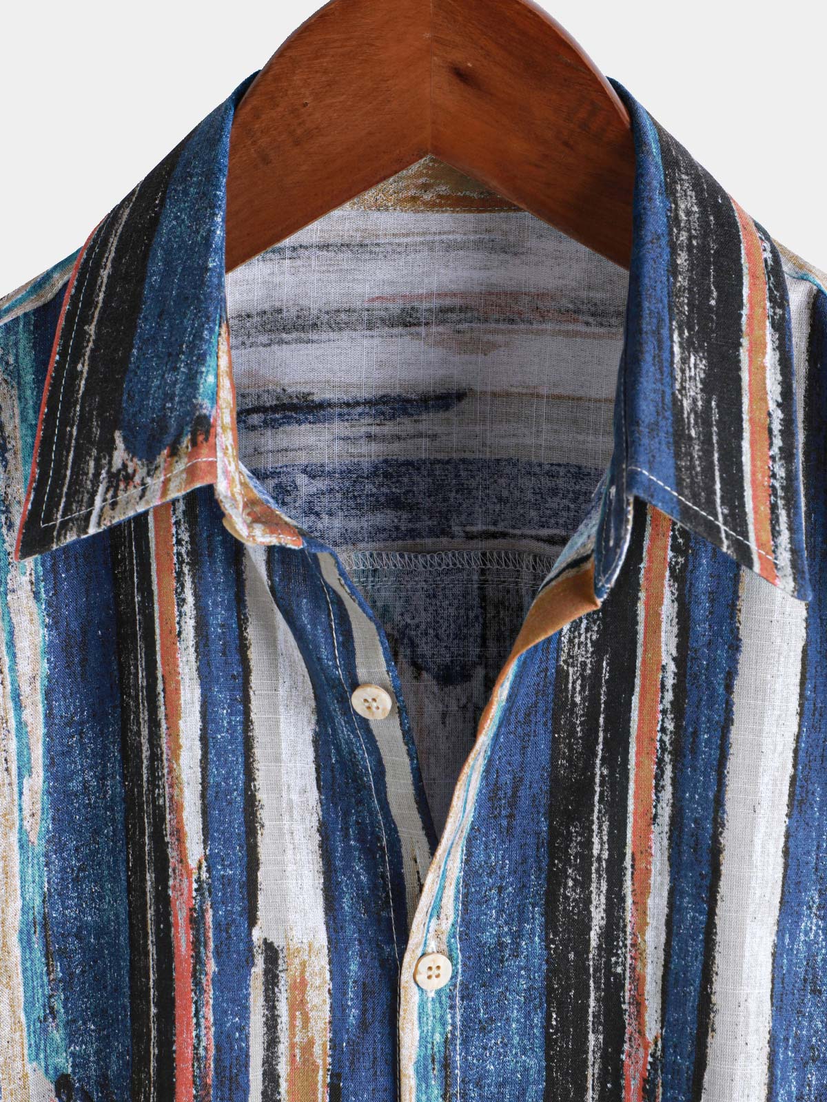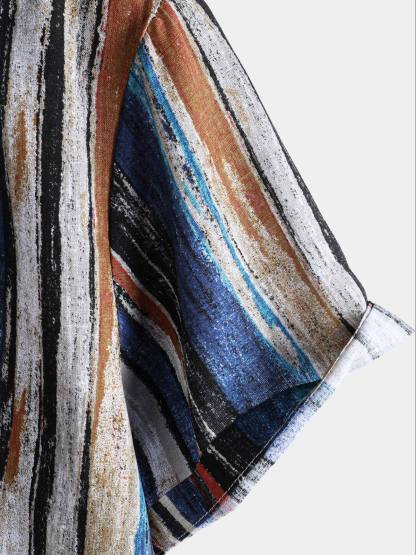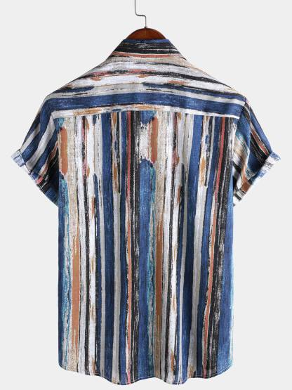 Men's Hawaiian Striped Short Sleeve Summer Shirt