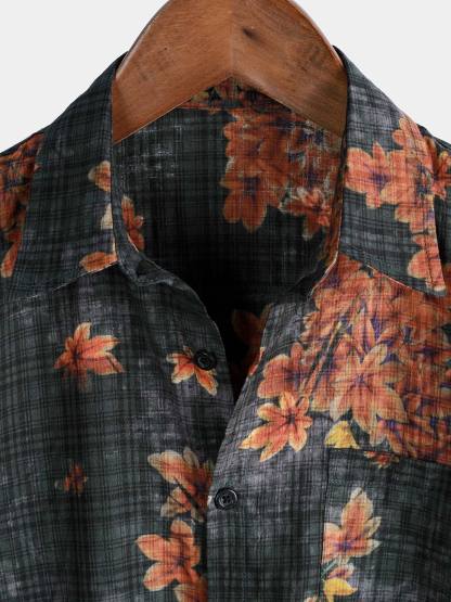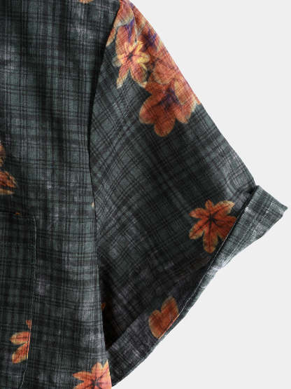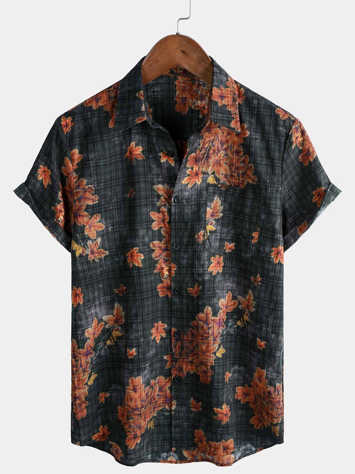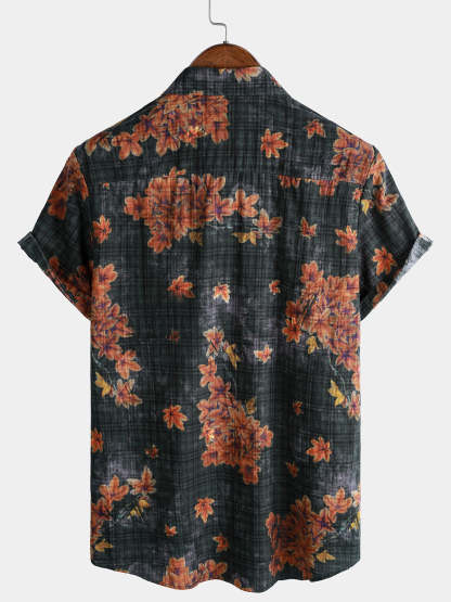 Men's Leaf Print Breathable Short Sleeve Hawaiian Shirt