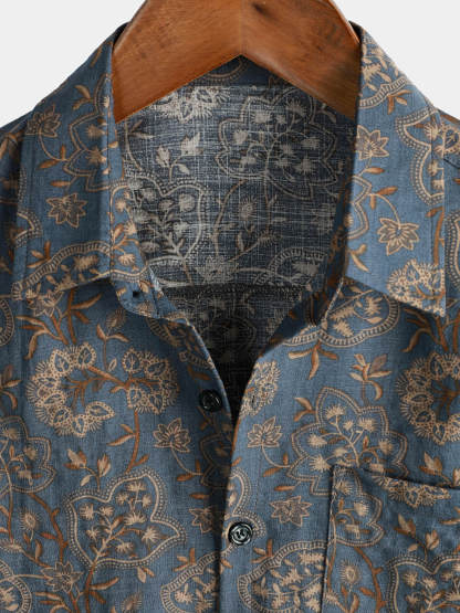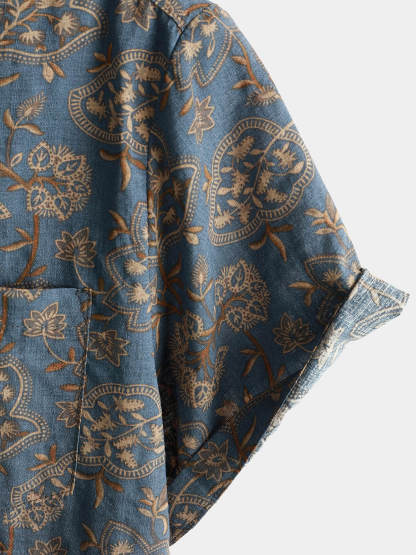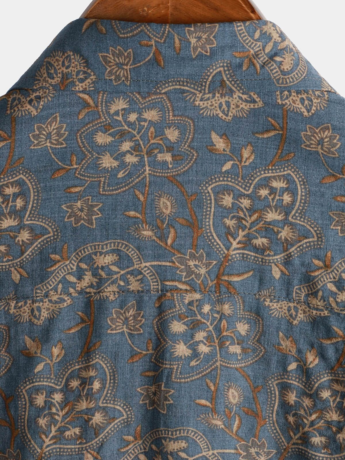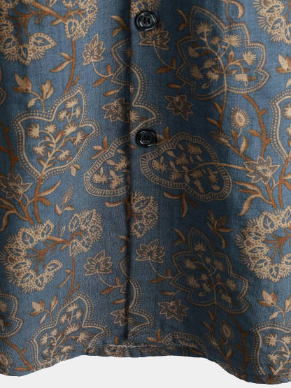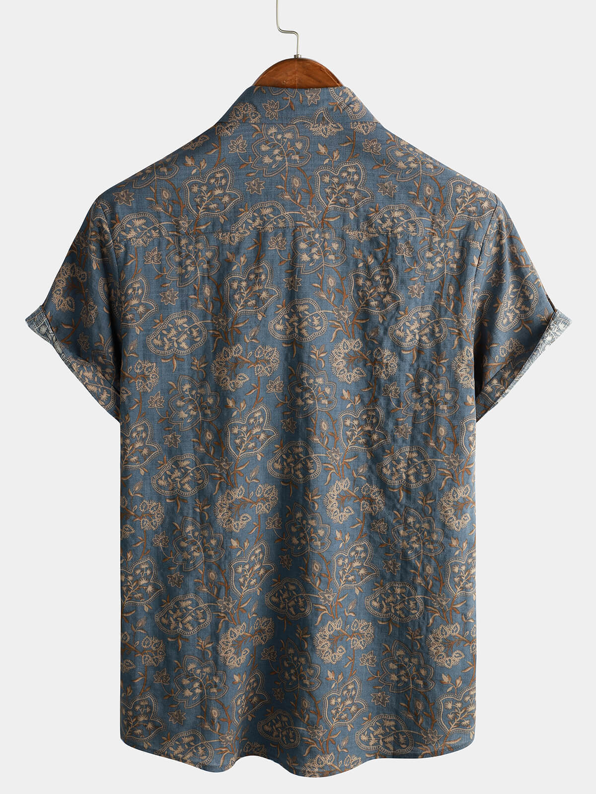 Men's Paisley Vintage Floral 70s Retro Button Up Beach Short Sleeve Shirt