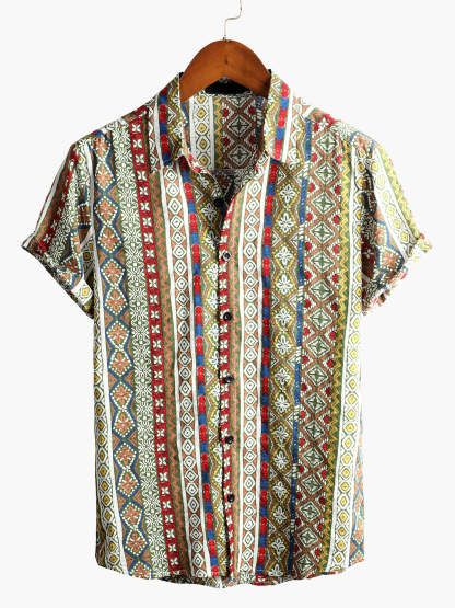 Men's Boho Short Sleeve Retro Shirt