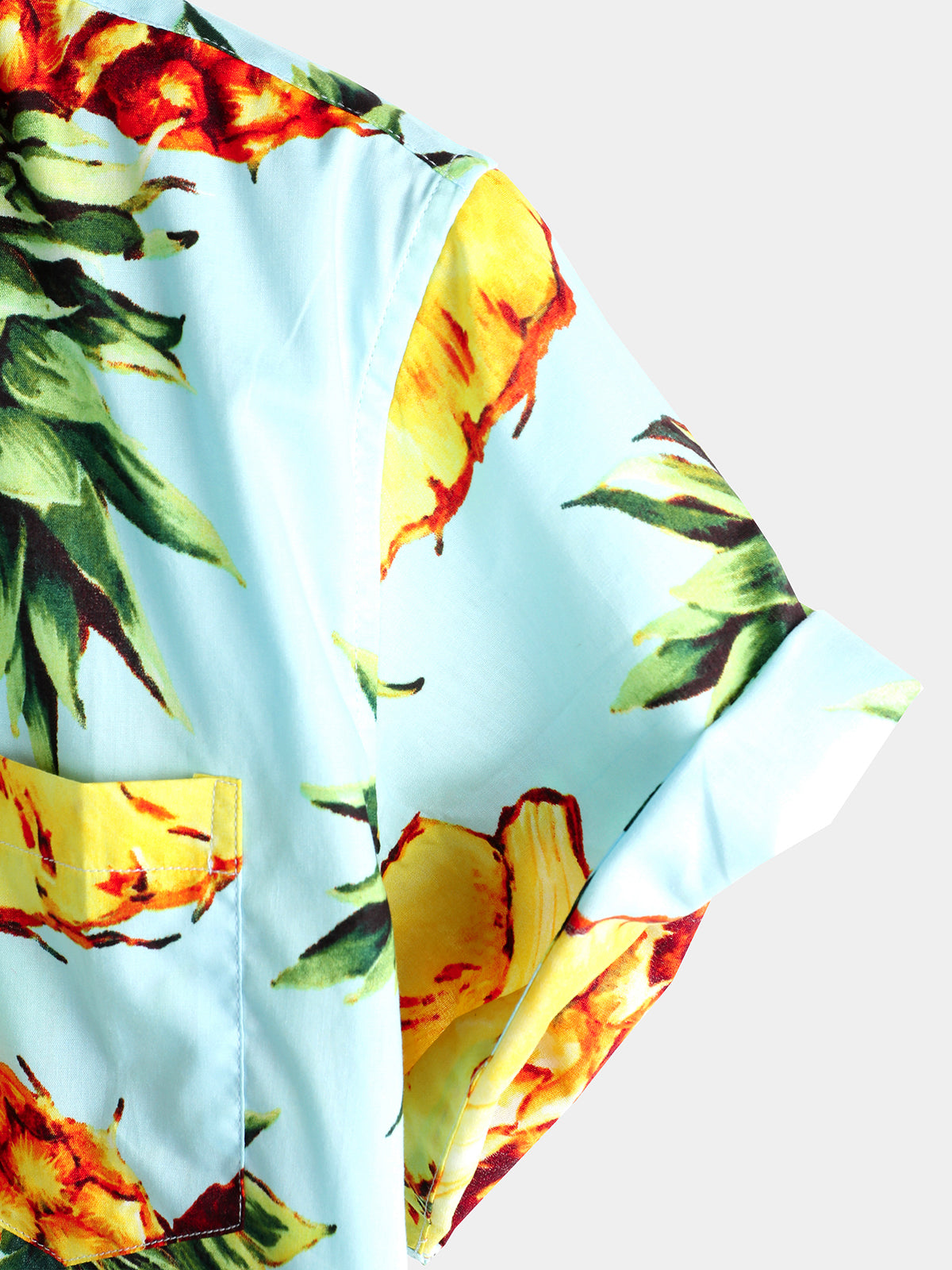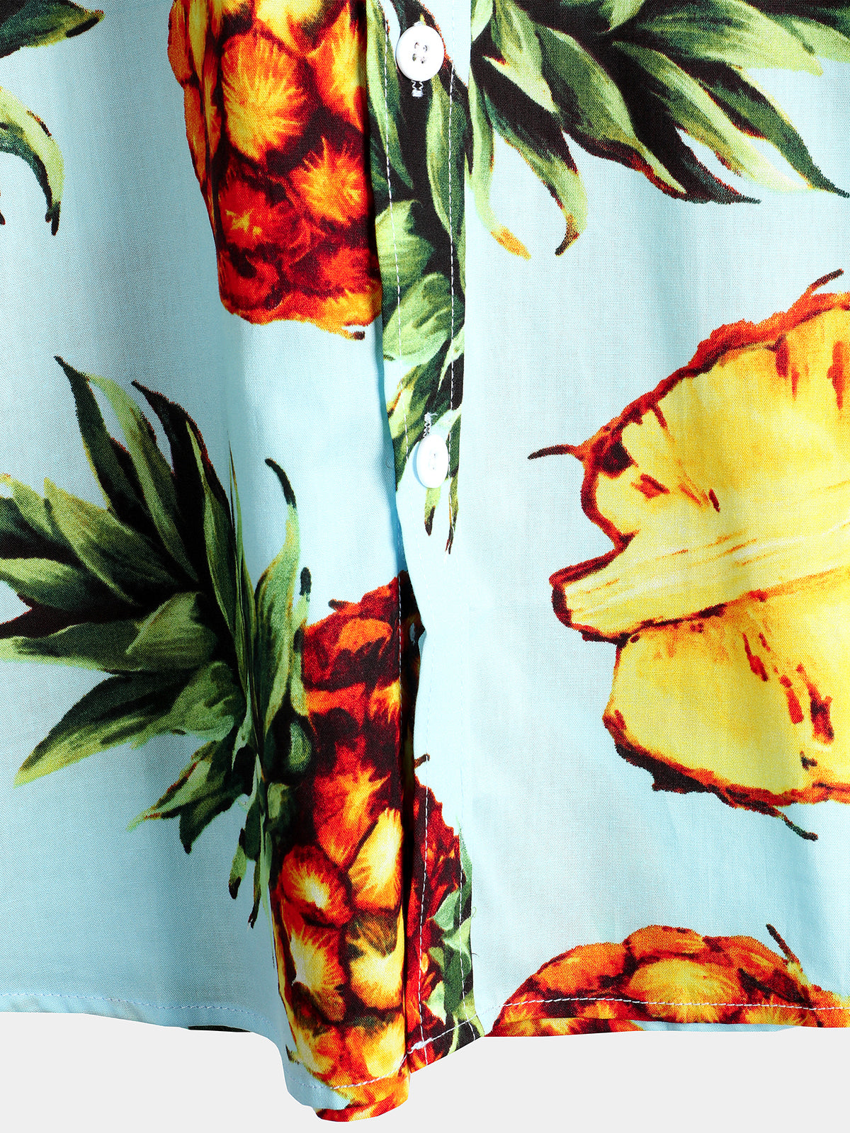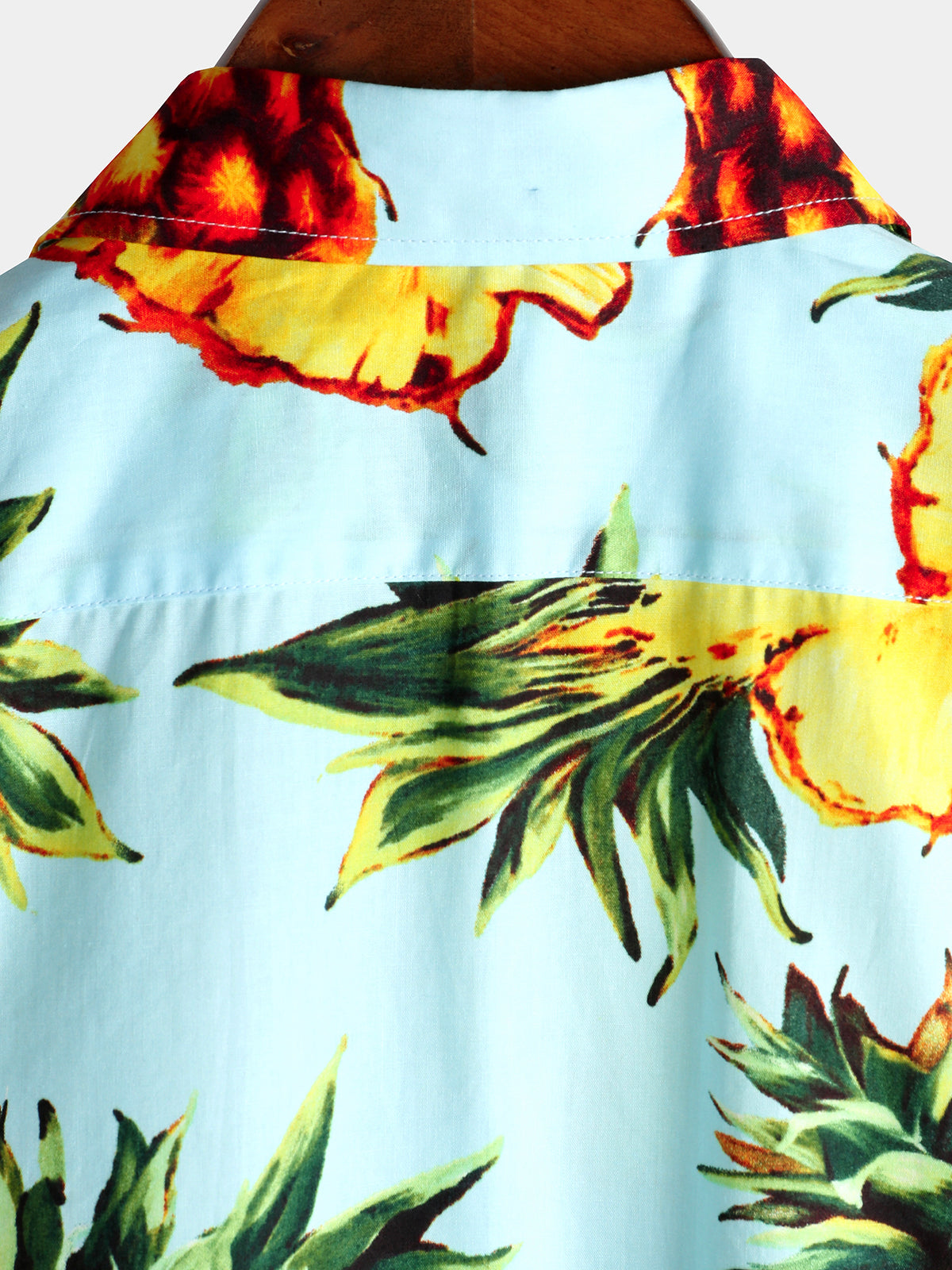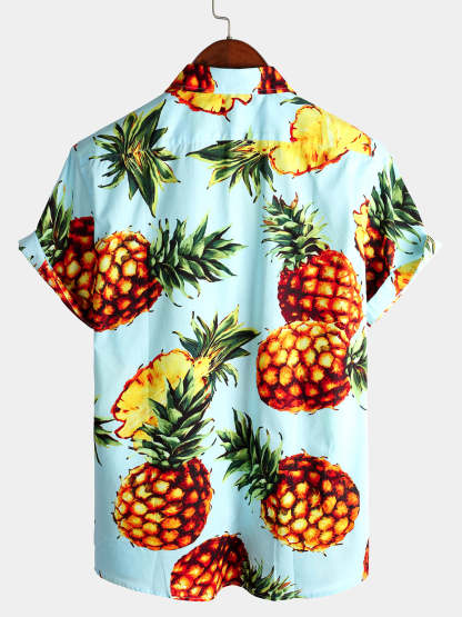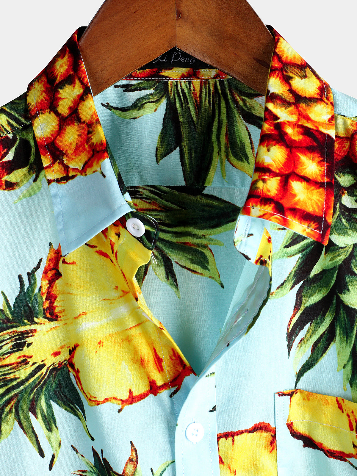 Men's Pineapple Print Holiday Pocket Cotton Shirt