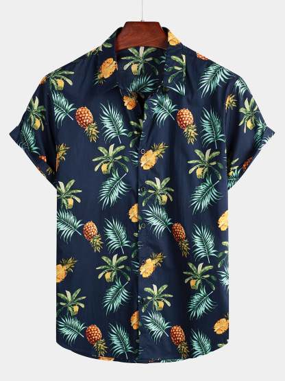 Men's Pineapple Print Short Sleeve Hawaiian Shirt – Mentalmens