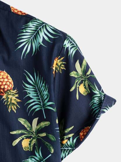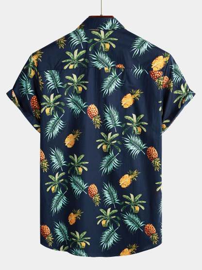 Men's Pineapple Print Short Sleeve Hawaiian Shirt