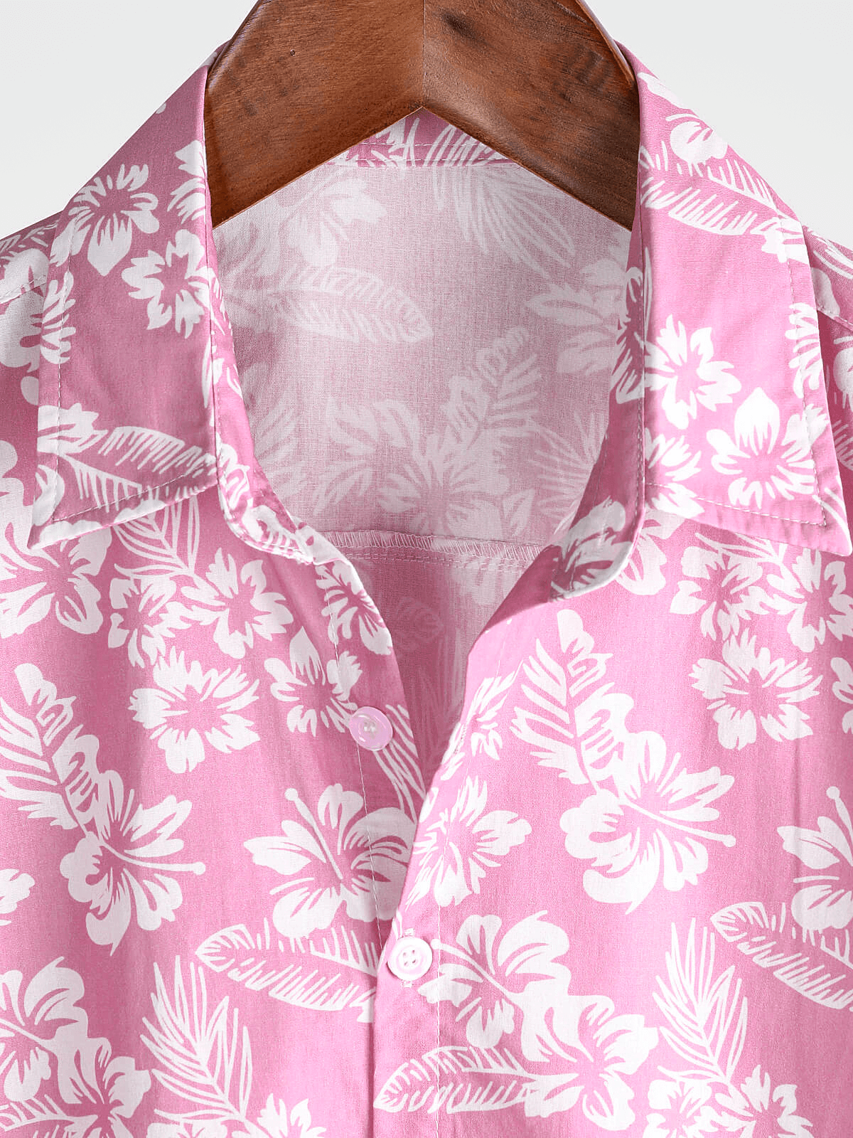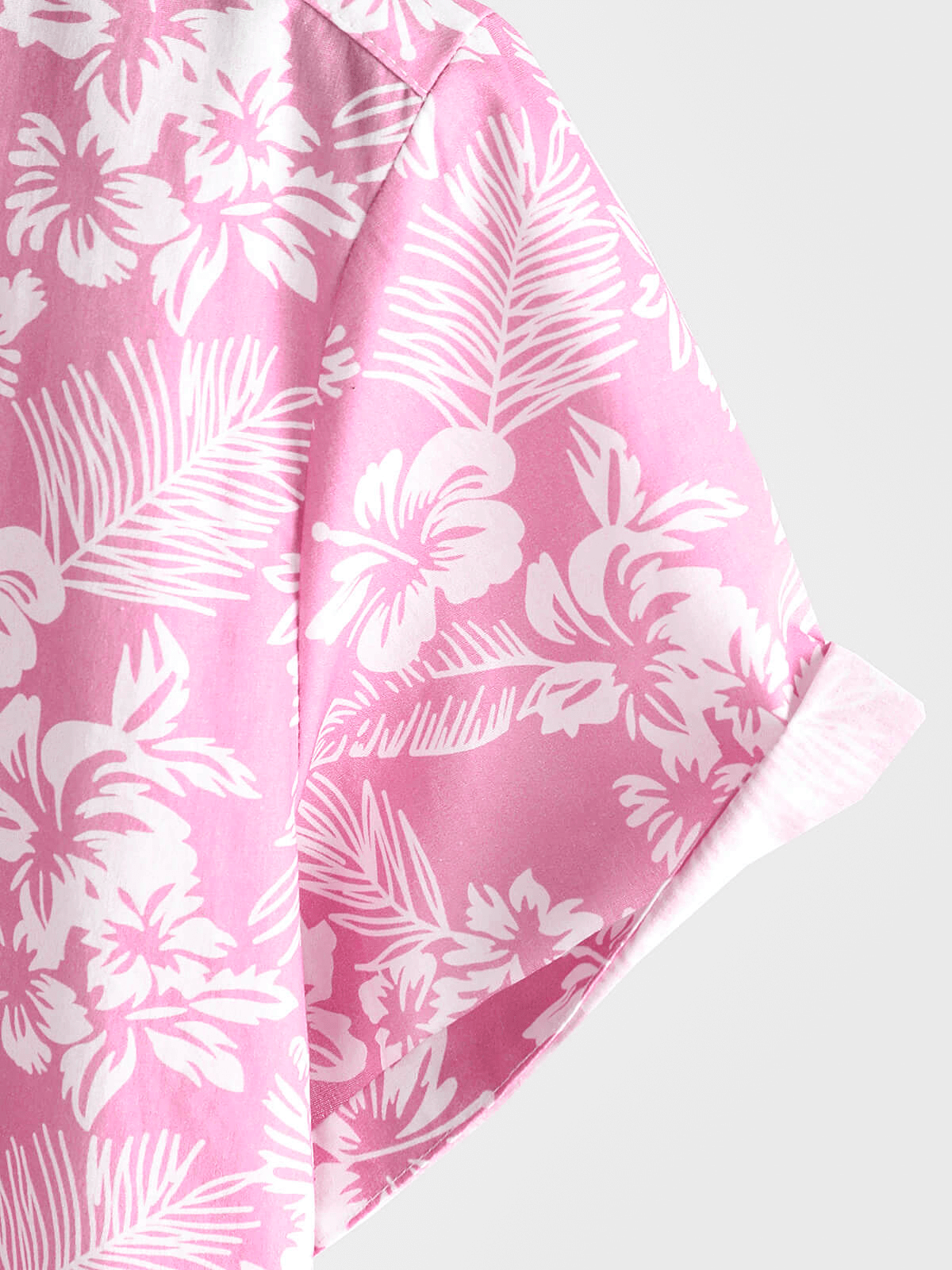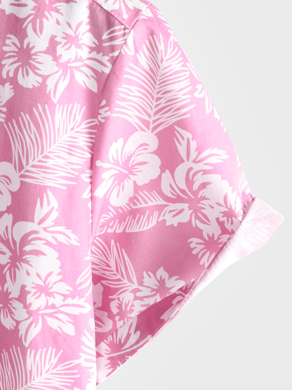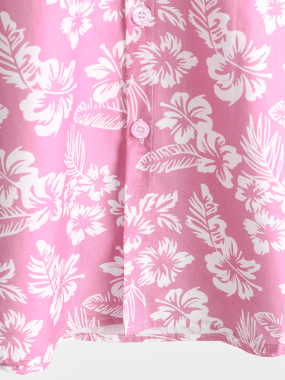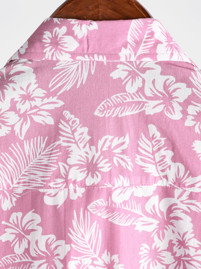 Men's Pink Cotton Hawaiian Floral Button Up Summer Short Sleeve Shirt