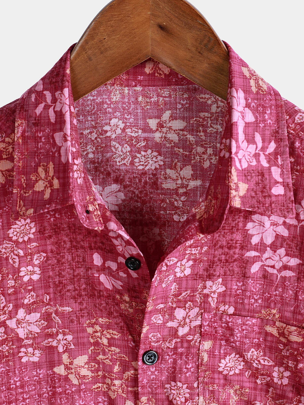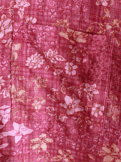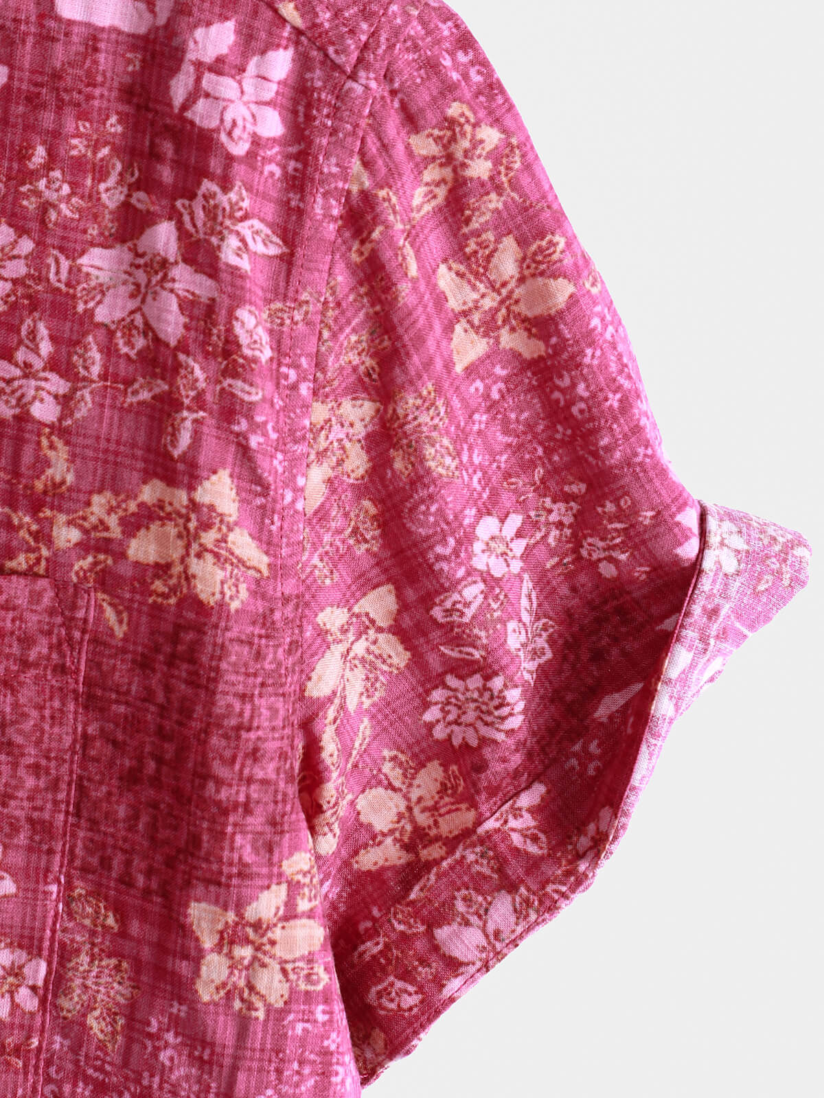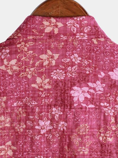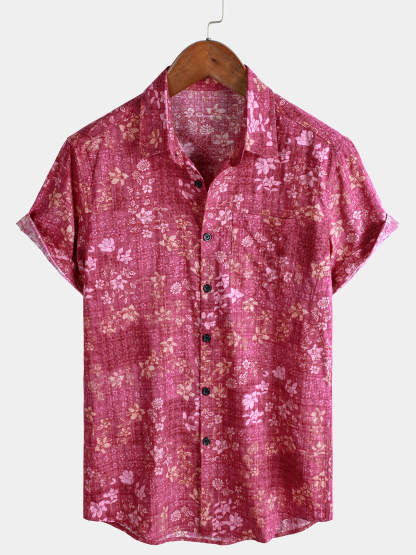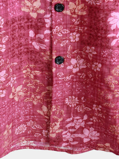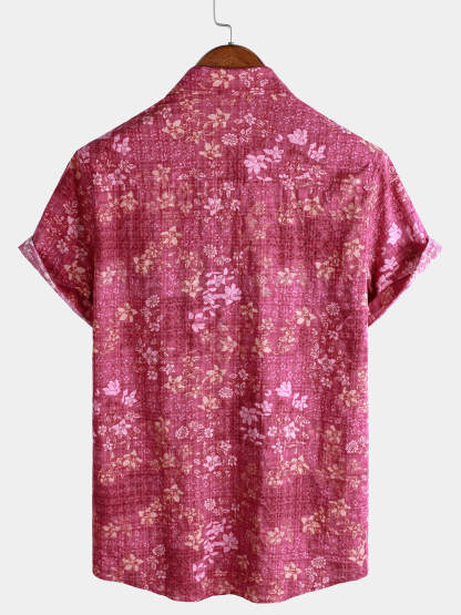 Men's Pink Floral Holiday Casual Pocket Short Sleeve Retro Shirt