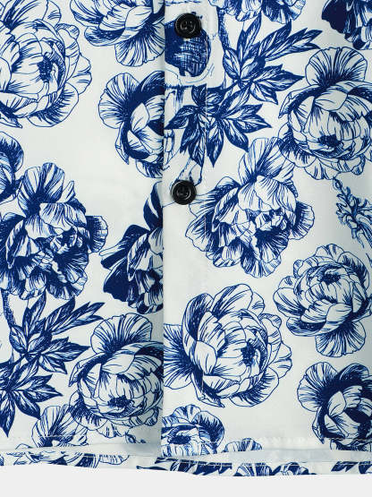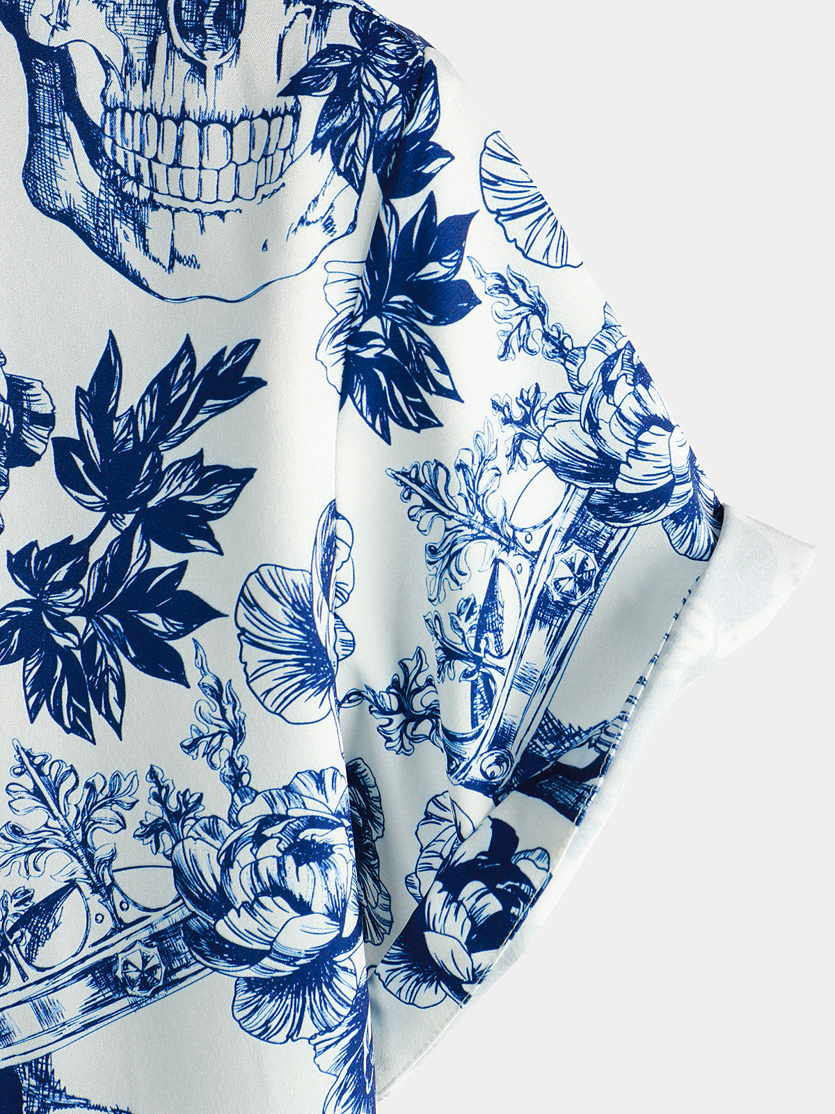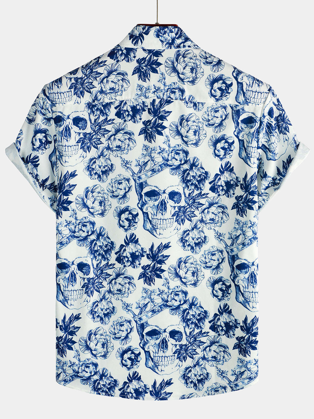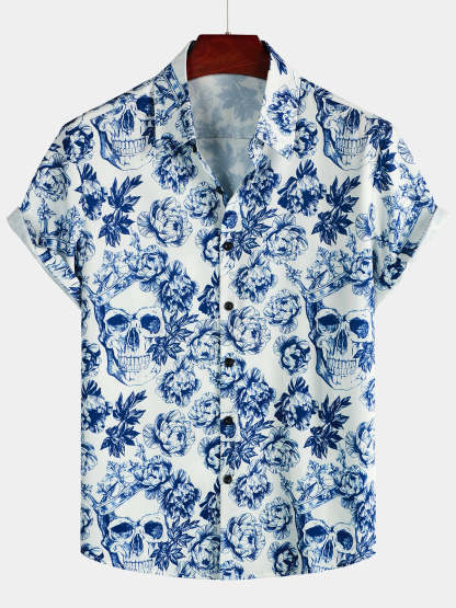 Men's Punk Rock Crown Floral Skull Print Short Sleeve Shirt