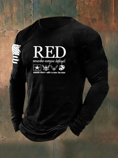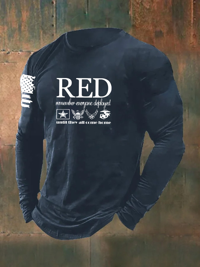 Men'S Red Remember Everyone Deployed Until They All Come Home Pattern Long Sleeve 100% Cotton T-Shirt