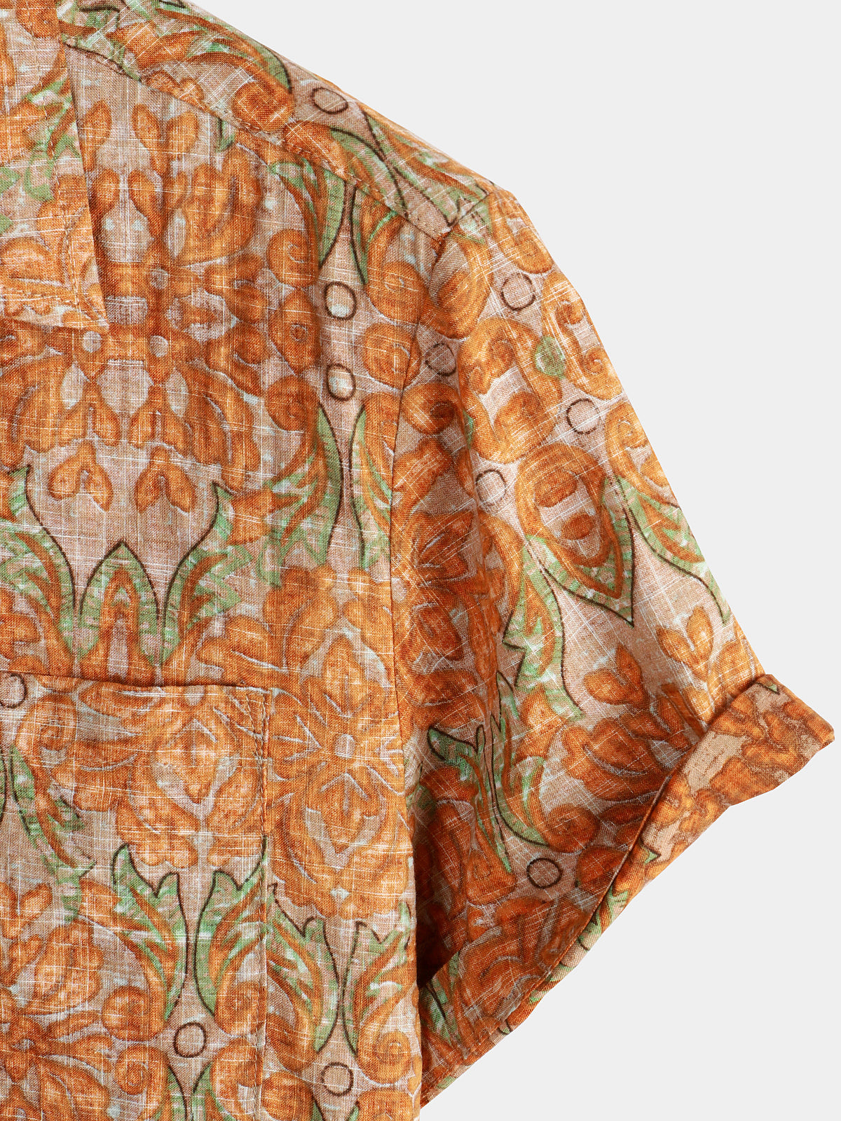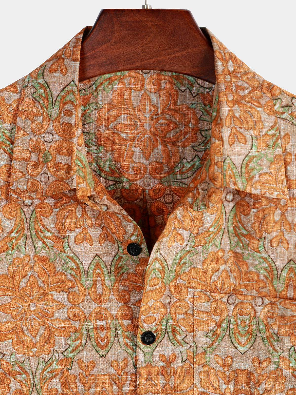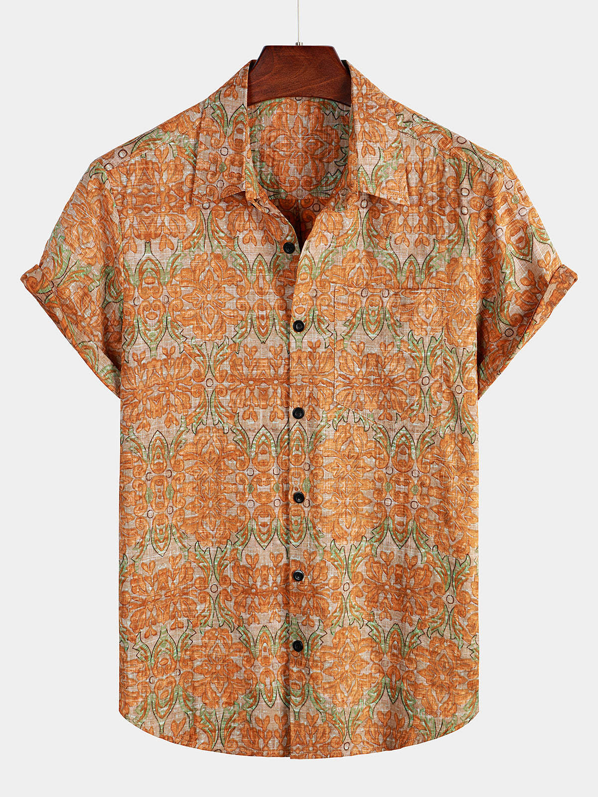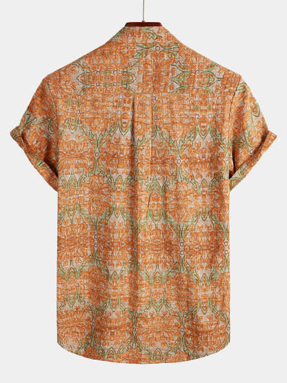 Men's Retro Casual Button Up Pocket Beach Vintage Orange Short Sleeve Shirt