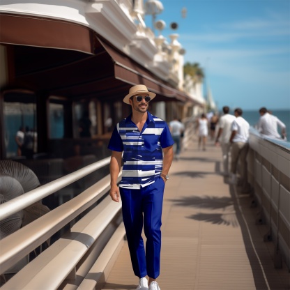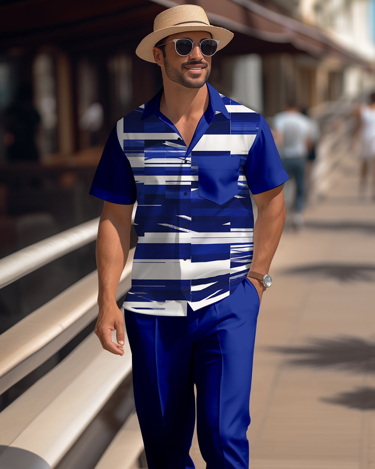 Men's retro colorblock short-sleeved shirt walking Suit 1649