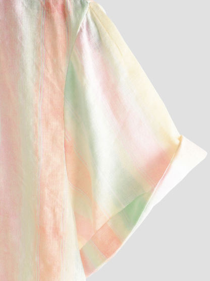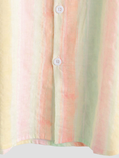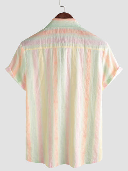 Men's Retro Colorful Striped Holiday Button Up Casual Short Sleeve Shirt