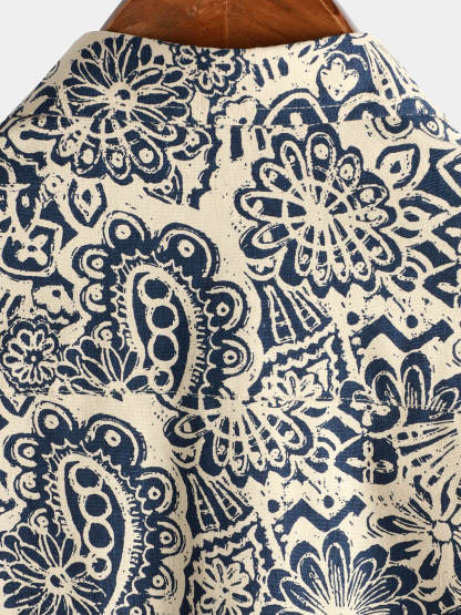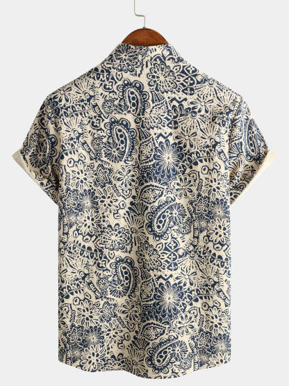 Men's Retro Floral Pocket Short Sleeve 70s Paisley Print Vintage Button Up Shirt
