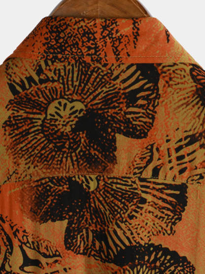 Men's Retro Floral Print Holiday Breathable Hawaiian Short Sleeve Shirt