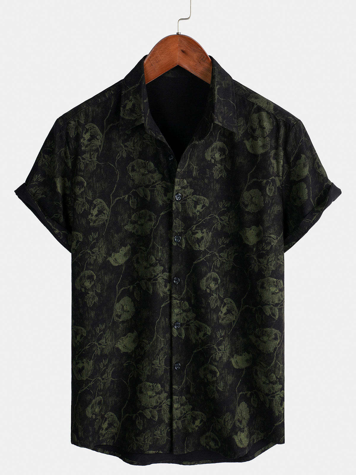 Men's Retro Floral Print Holiday Breathable Hawaiian Short Sleeve Shirt