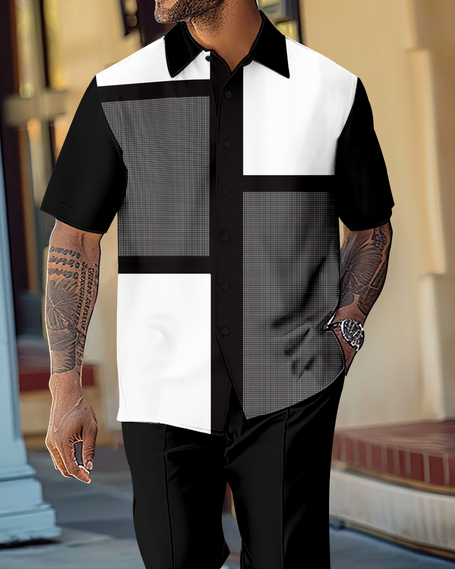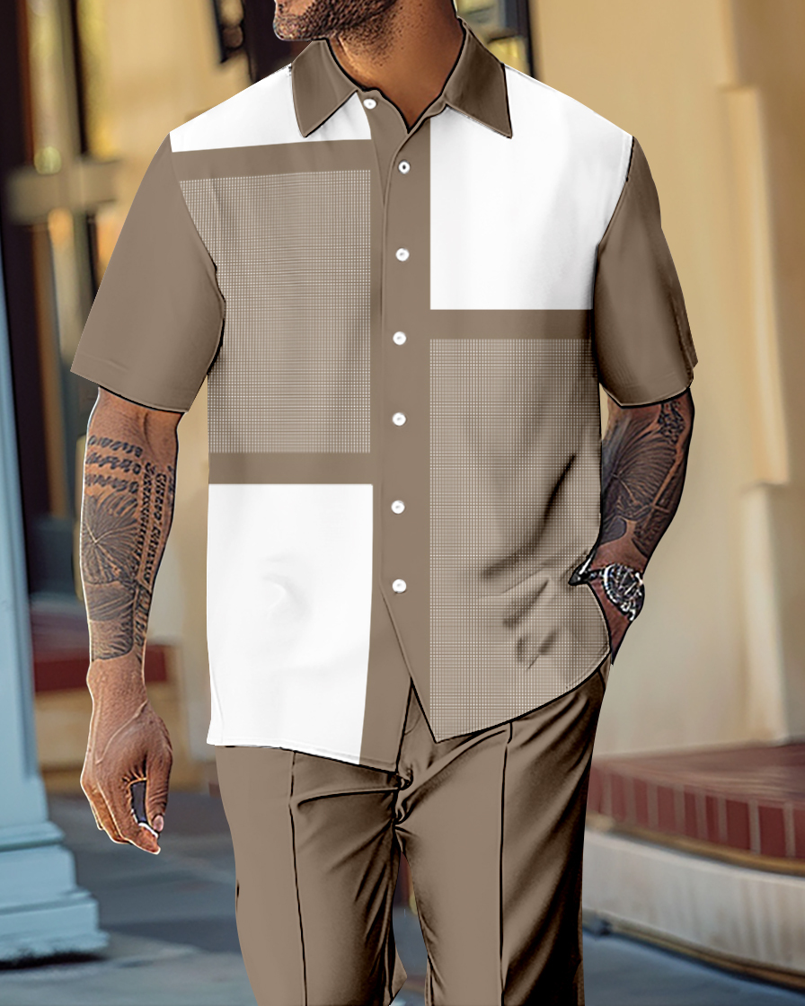 Men's Retro Gorgeous Short Sleeve Shirt Walking Suit 1062