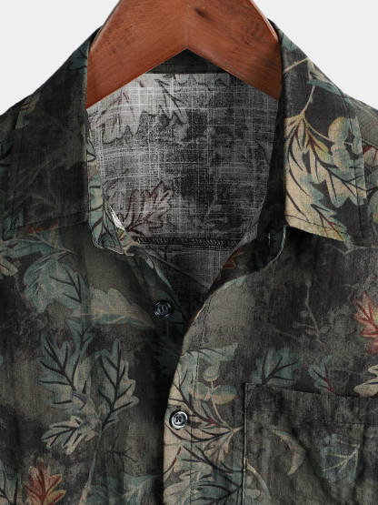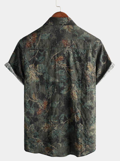 Men's Retro Leaf Short Sleeve Hawaiian Beach Shirt