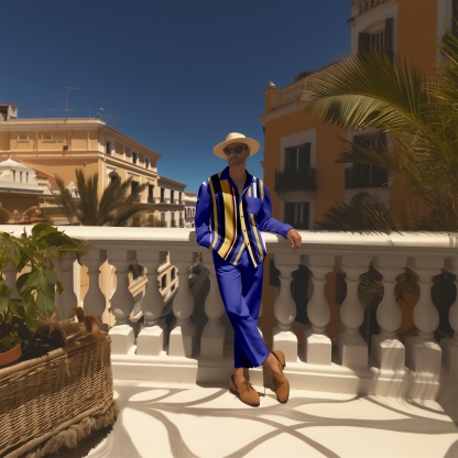 Men's Retro Printed Long Sleeve Shirt Walking Suit 5