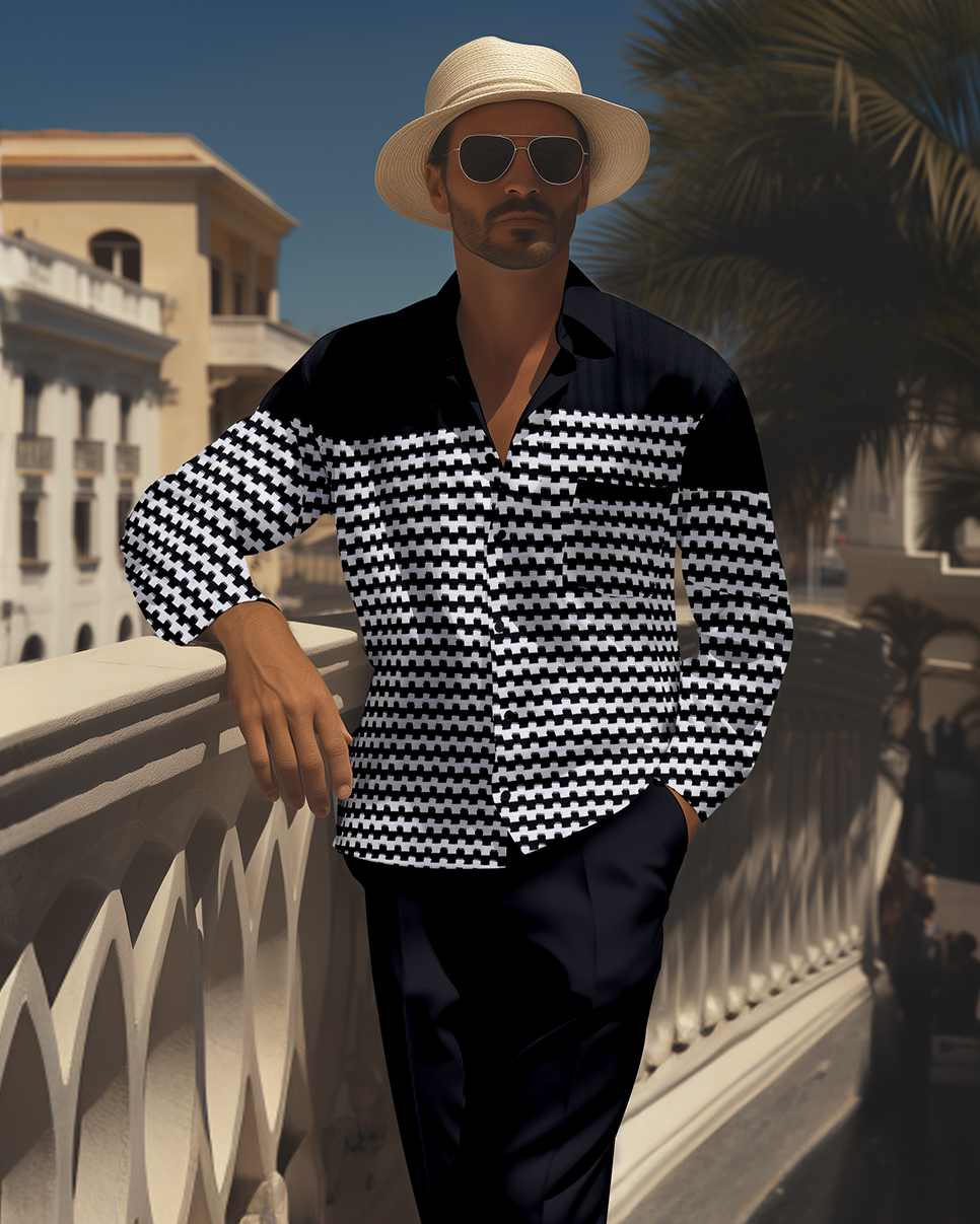 Men's Retro Printed Long Sleeve Shirt Walking Suit 52