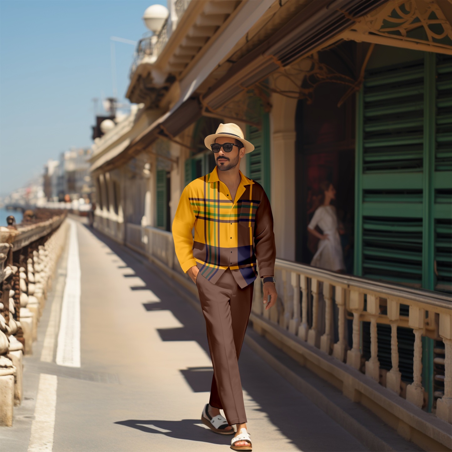 Men's Retro Printed Long Sleeve Shirt Walking Suit 58