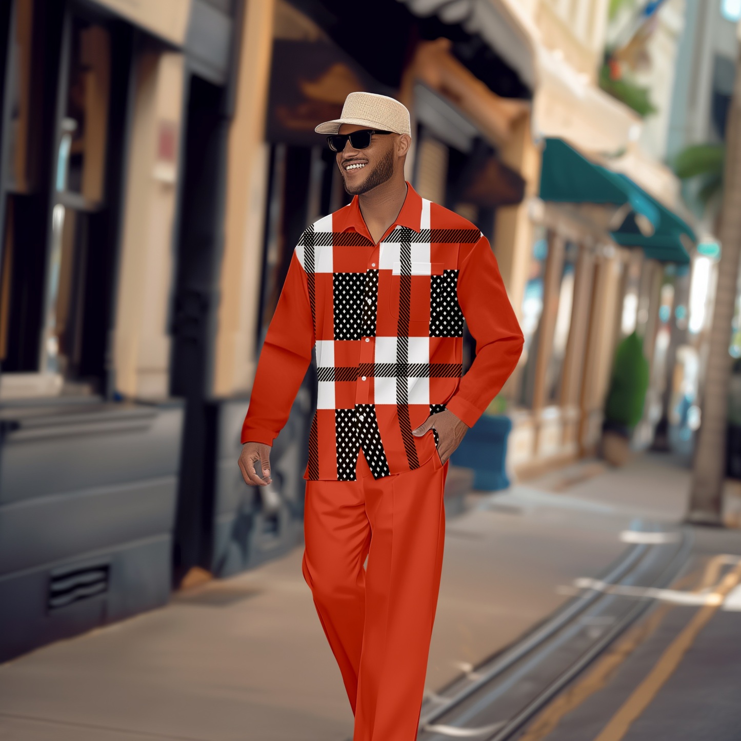 Men's Retro Printed Long Sleeve Shirt Walking Suit 56