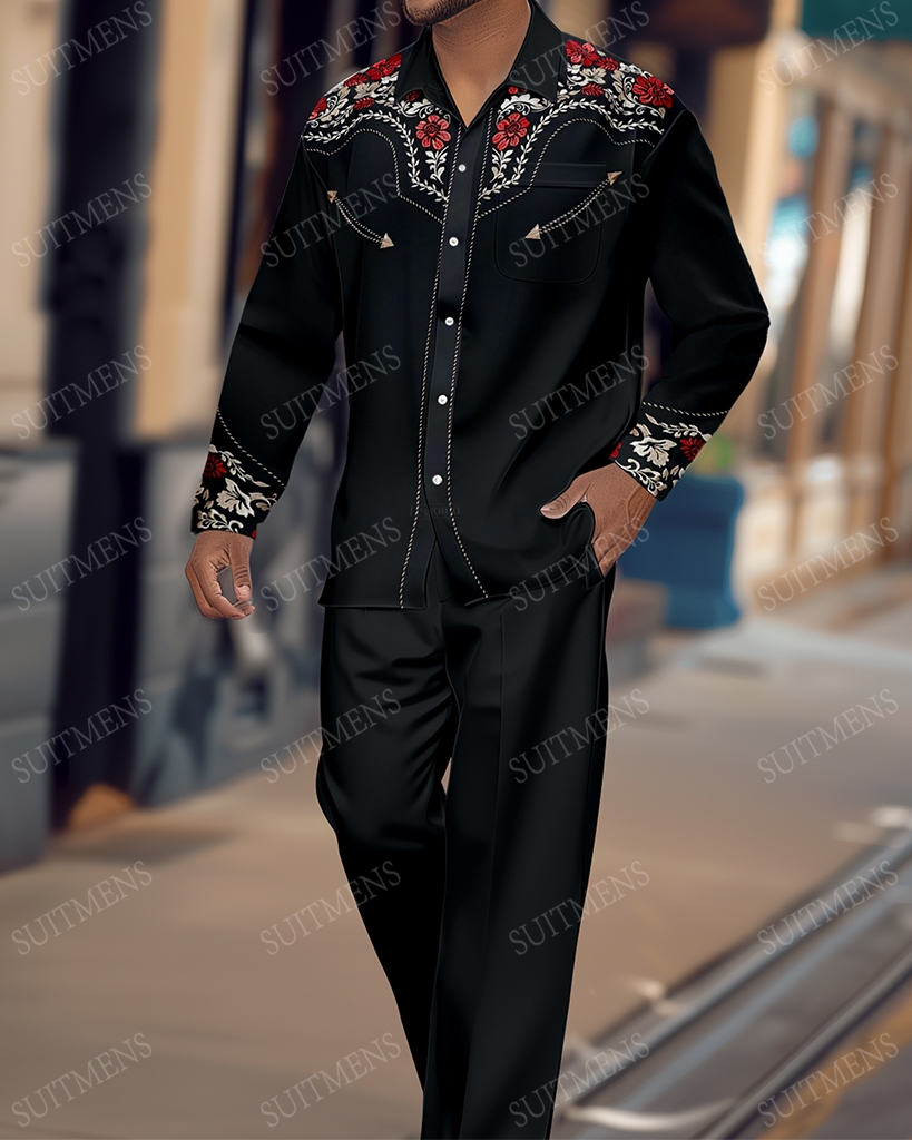 Men's Retro Printed Long Sleeve Shirt Walking Suit 548