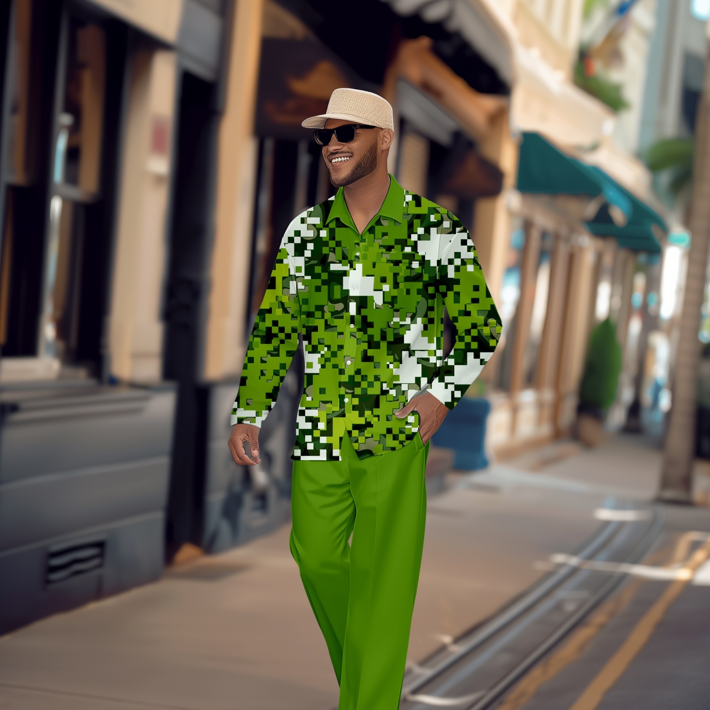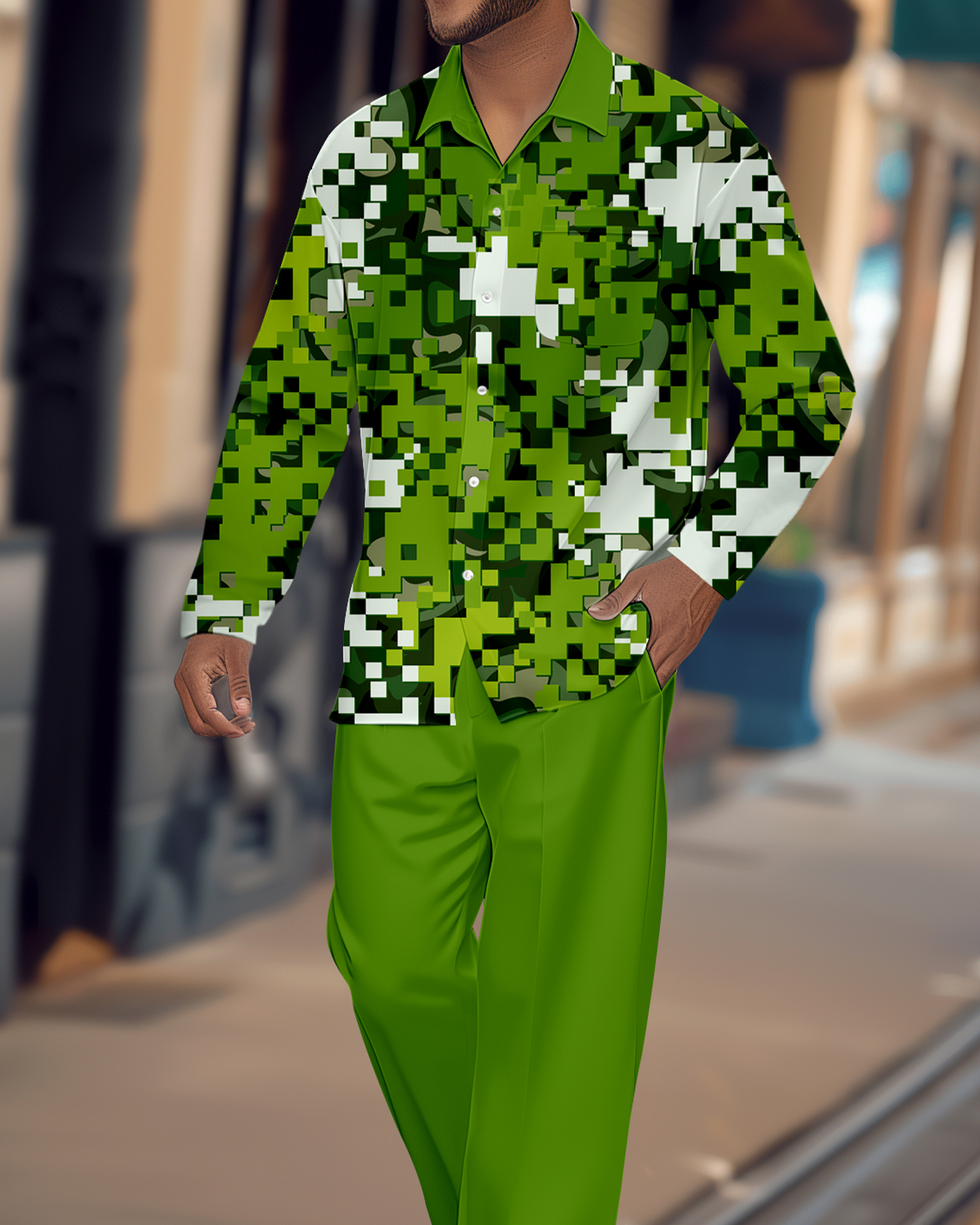 Men's Retro Printed Long Sleeve Shirt Walking Suit 66